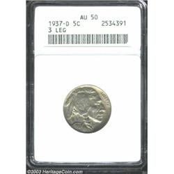 <TABLE cellSpacing=0 cellPadding=0 width="100%" bgColor=#000000 border=0><TBODY><TR><TD width="100%"><TABLE cellSpacing=1 cellPadding=3 width="100%" border=0><TBODY><TR><TD width="100%" bgColor=#79735c><FONT face=arial color=#ffffff size=3><B>Description</B> </FONT></TD></TR><TR><TD width="100%" bgColor=#ffffff><FONT face=arial size=2><B>1937-D 5C Three-Legged AU50 ANACS.</B></I> Nicely struck, for the type, with weakness in the expected areas, and glossy, lightly marked surfaces. </FONT></TD></TR></TBODY></TABLE></TD></TR></TBODY></TABLE><BR><A name=PricesRealized></A><TABLE cellSpacing=0 cellPadding=0 width="100%" bgColor=#000000 border=0><TBODY><TR><TD width="100%"><TABLE cellSpacing=1 cellPadding=3 width="100%" border=0><TBODY><TR><TD width="100%" bgColor=#79735c><A name=PR><FONT face=arial color=#ffffff size=3><B>Previous Prices from Heritage Auctions</B> </FONT></A></TD></TR><TR><TD bgColor=#f6f6ed><TABLE cellSpacing=0 cellPadding=0 width="100%" border=1><TBODY><TR><TD align=middle width="33%"><B>Date</B></TD><TD align=middle width="33%"><B>Service</B></TD><TD align=middle width="33%"><B>Price</B></TD></TR><TR bgColor=whitesmoke><TD width="33%"><B>03/01/2001</B></TD><TD width="33%">NGC</TD><TD width="33%">$546.00</TD></TR><TR bgColor=whitesmoke><TD width="33%"><B>11/06/2001</B></TD><TD width="33%">NGC</TD><TD width="33%">$525.00</TD></TR><TR bgColor=whitesmoke><TD width="33%"><B>01/11/2003</B></TD><TD width="33%">ANACS</TD><TD width="33%">$747.50</TD></TR><TR bgColor=whitesmoke><TD width="33%"><B>01/11/2003</B></TD><TD width="33%">ANACS</TD><TD width="33%">$690.00</TD></TR><TR bgColor=whitesmoke><TD width="33%"><B>07/30/2002</B></TD><TD width="33%">ANACS</TD><TD width="33%">$563.50</TD></TR><TR bgColor=whitesmoke><TD width="33%"><B>06/10/2002</B></TD><TD width="33%">ANACS</TD><TD width="33%">$747.50</TD></TR><TR bgColor=whitesmoke><TD width="33%"><B>11/15/2001</B></TD><TD width="33%">ANACS</TD><TD width="33%">$805.00</TD></TR><TR bgColor=whitesmoke><TD width="33%"><B>08/05/2001</B></TD><TD width="33%">ANACS</TD><TD width="33%">$488.75</TD></TR><TR bgColor=whitesmoke><TD width="33%"><B>01/11/2003</B></TD><TD width="33%">PCGS</TD><TD width="33%">$805.00</TD></TR><TR bgColor=whitesmoke><TD width="33%"><B>06/11/2002</B></TD><TD width="33%">PCGS</TD><TD width="33%">$575.00</TD></TR><TR bgColor=whitesmoke><TD width="33%"><B>01/12/2002</B></TD><TD width="33%">PCGS</TD><TD width="33%">$833.75</TD></TR><TR bgColor=whitesmoke><TD width="33%"><B>11/20/2001</B></TD><TD width="33%">PCGS</TD><TD width="33%">$525.00</TD></TR><TR bgColor=whitesmoke><TD width="33%"><B>10/06/2001</B></TD><TD width="33%">PCGS</TD><TD width="33%">$546.25</TD></TR><TR bgColor=whitesmoke><TD width="33%"><B>05/05/2000</B></TD><TD width="33%">PCGS</TD><TD width="33%">$552.00</TD></TR><TR bgColor=whitesmoke><TD width="33%"><B>08/16/1995</B></TD><TD width="33%">PCGS</TD><TD width="33%">$407.00</TD></TR><TR bgColor=whitesmoke><TD width="33%"><B>10/06/2000</B></TD><TD width="33%">PCGS</TD><TD width="33%">$690.00</TD></TR><TR bgColor=whitesmoke><TD width="33%"><B>09/23/1998</B></TD><TD width="33%">PCGS</TD><TD width="33%">$484.00</TD></TR><TR bgColor=whitesmoke><TD width="33%"><B>06/01/1996</B></TD><TD width="33%">PCGS</TD><TD width="33%">$577.50</TD></TR><TR bgColor=whitesmoke><TD width="33%"><B>08/19/1995</B></TD><TD width="33%">PCGS</TD><TD width="33%">$418.00</TD></TR><TR bgColor=whitesmoke><TD width="33%"><B>04/02/1993</B></TD><TD width="33%">PCGS</TD><TD width="33%">$550.00</TD></TR><TR bgColor=whitesmoke><TD width="33%"><B>08/05/2001</B></TD><TD width="33%">NGC</TD><TD width="33%">$506.00</TD></TR><TR bgColor=whitesmoke><TD width="33%"><B>08/08/2001</B></TD><TD width="33%">ANACS</TD><TD width="33%">$575.00</TD></TR><TR bgColor=whitesmoke><TD width="33%"><B>05/31/2001</B></TD><TD width="33%">ANACS</TD><TD width="33%">$546.25</TD></TR><TR bgColor=whitesmoke><TD width="33%"><B>03/27/2001</B></TD><TD width="33%">ANACS</TD><TD width="33%">$525.00</TD></TR><TR bgColor=whitesmoke><TD width="33%"><B>08/02/1997</B></TD><TD width="33%">ANACS</TD><TD width="33%">$437.00</TD></TR><TR bgColor=whitesmoke><TD width="33%"><B>09/10/1993</B></TD><TD width="33%">ANACS</TD><TD width="33%">$632.50</TD></TR><TR bgColor=whitesmoke><TD width="33%"><B>05/06/1994</B></TD><TD width="33%">ANACS</TD><TD width="33%">$451.00</TD></TR><TR bgColor=whitesmoke><TD width="33%"><B>09/13/1997</B></TD><TD width="33%">ANACS</TD><TD width="33%">$448.50</TD></TR><TR bgColor=whitesmoke><TD width="33%"><B>02/01/2000</B></TD><TD width="33%">ANACS</TD><TD width="33%">$529.00</TD></TR><TR bgColor=whitesmoke><TD width="33%"><B>03/28/2000</B></TD><TD width="33%">PCGS</TD><TD width="33%">$360.00</TD></TR><TR bgColor=whitesmoke><TD width="33%"><B>12/03/1993</B></TD><TD width="33%">PCGS</TD><TD width="33%">$495.00</TD></TR><TR bgColor=whitesmoke><TD width="33%"><B>03/01/1995</B></TD><TD width="33%">ANACS</TD><TD width="33%">$605.00</TD></TR><TR bgColor=whitesmoke><TD width="33%"><B>03/11/2003</B></TD><TD width="33%">ANACS</TD><TD width="33%">$690.00</TD></TR></TBODY></TABLE></TD></TR><TR><TD bgColor=#ffffff><FONT face=arial size=1 ?>PLEASE NOTE: All prices realized reflect the final hammer price PLUS the buyer's premium in auctions that charge a buyer's premium. Each item has a notation at the top of the listing indicating whether that lot included a buyer's premium. Example: A item that sells with a final hammer price of $100 and a 20% buyer's premium will display with a price realized of $120. All information listed is intended to be as accurate as possible, but errors are possible. Please use this guide carefully and inform us of any inaccuracies. </FONT></TD></TR></TBODY></TABLE></TD></TR></TBODY></TABLE><BR><TABLE cellSpacing=0 cellPadding=0 width="100%" bgColor=#000000 border=0><TBODY><TR><TD width="100%"><TABLE cellSpacing=1 cellPadding=3 width="100%" border=0><TBODY><TR><TD width="100%" bgColor=#79735c colSpan=6><FONT face=arial color=#ffffff size=3><B>Price Guid