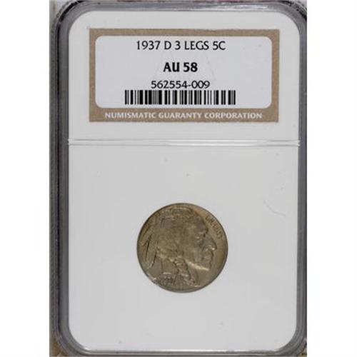 1937-D 5C Three-Legged AU58 NGC.