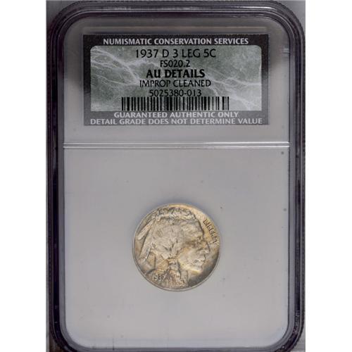 1937-D 5C Three-Legged--Improperly Cleaned--NCS. AU De 1937-D[5C] Three-Legged--Improperly Cleaned--