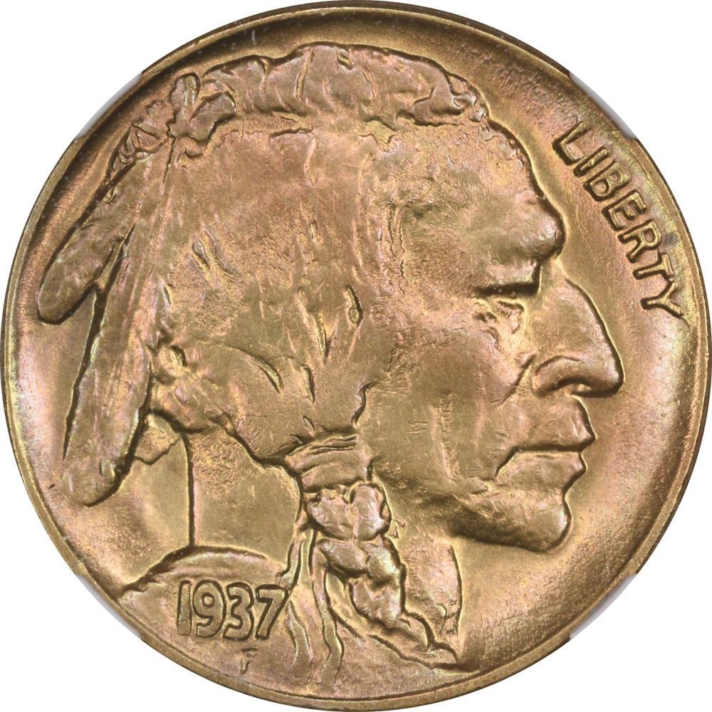 This boldly lustrous Gem example of our hobbled bisonus americanus friend is afire with a pastel array of rose, gold, and pink iridescence on both sides. Marks are minimal, as befits the grade, and the strike is noticeably finer than typically found for the variety. If a gorgeous example of this popular error is on your wish list, you will do well to cast an eye on this beauty! Absolutely choice in all regards.