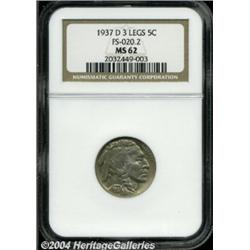 <B>1937-D<5C> Three-Legged MS61 NGC.</B></I> FS-020.2. Rich apricot-olive, rose, and pastel-golden colors endow this nicely struck and luminous key date representative. A popular <I>Guide Book</B></I> variety created by exuberant die polishing at the Denver Mint. <BR><BR><B>Important notice:</B> Heritage usually auctions material at the rate of 200-250 lots per hour. On some occasions eBay Live bid software or the Internet may not be able to keep up with the pace of the auction. We recommend placing a realistic absentee bid now as insurance to avoid disappointment. Occasionally the auctioneer may eliminate or reject an eBay Live bid, and the auctioneer may also reopen a lot after the close of the eBay live bidding (usually because we missed an audience bid), and may reject your bid even if it shows you as the winning bidder. By bidding via eBay Live, you agree that Heritage may award the lot to another bidder at its sole discretion under the circumstances described above or any other reasonable circumstances. Since eBay bids are not shown to us until we open the lot on the floor, we treat those bids just like floor bids. In most cases the floor responds before the eBay bid is presented to us, due to Internet lag time, so for consistency we have made it a policy that floor bids are always considered first over tie eBay live bids. Also please note that all Heritage lots purchased through eBay Live carry a 20% Buyer's Premium. Please make sure you read the Terms and Conditions before you bid. </span></font></tr></table></td></tr></table>