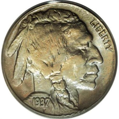 <B>1937-D 5C Three-Legged MS63 PCGS.</B></I> Struck from a heavily worn die state with no trace of the foreleg and minimal highpoint detail. This lightly marked Select example has soft, quicksilver luster and a broad palette of hues, with orange, peach, plum, and sky-blue toning over each side. An unworn and pleasing representative of this popular Buffalo nickel variety.<BR><BR><B>Coin Engraver:</B> James E. Fraser<BR><BR><b>Shipping:</b> Coins & Currency (<a target="_blank" href="http://www.heritageauctions.com/common/shipping.php">view shipping information</a>)