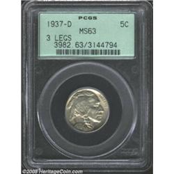 <TR><TD width="100%"><TABLE cellSpacing=1 cellPadding=3 width="100%" border=0><TBODY><TR><TD width="100%" bgColor=#79735c><FONT face=arial color=#ffffff size=3><B>Description</B> </FONT></TD></TR><TR><TD width="100%" bgColor=#ffffff><FONT face=arial size=2><B>1937-D 5C Three-Legged MS63 PCGS.</B></I> A well struck example of this scarce and always popular Buffalo nickel variety. There are a few small, stray marks on each side and the luster is not quite fulsome enough to warrant a higher grade, being draped in a uniform olive-gray patina. The surfaces have an unusually high degree of the granularity, related to die erosion, which is common to this issue. This as struck feature of the coin does not, in theory, affect the technical grade of the piece. Population: 185 in 63, 157 finer (4/03). </FONT></TD></TR></TBODY></TABLE></TD></TR></TBODY></TABLE><BR><A name=PricesRealized></A><TABLE cellSpacing=0 cellPadding=0 width="100%" bgColor=#000000 border=0><TBODY><TR><TD width="100%"><TABLE cellSpacing=1 cellPadding=3 width="100%" border=0><TBODY><TR><TD width="100%" bgColor=#79735c><A name=PR><FONT face=arial color=#ffffff size=3><B>Previous Prices from Heritage Auctions</B> </FONT></A></TD></TR><TR><TD bgColor=#f6f6ed><TABLE cellSpacing=0 cellPadding=0 width="100%" border=1><TBODY><TR><TD align=middle width="33%"><B>Date</B></TD><TD align=middle width="33%"><B>Service</B></TD><TD align=middle width="33%"><B>Price</B></TD></TR><TR bgColor=whitesmoke><TD width="33%"><B>07/30/2002</B></TD><TD width="33%">NGC</TD><TD width="33%">$2,990.00</TD></TR><TR bgColor=whitesmoke><TD width="33%"><B>07/30/2002</B></TD><TD width="33%">NGC</TD><TD width="33%">$2,990.00</TD></TR><TR bgColor=whitesmoke><TD width="33%"><B>02/23/2002</B></TD><TD width="33%">NGC</TD><TD width="33%">$2,990.00</TD></TR><TR bgColor=whitesmoke><TD width="33%"><B>02/23/2002</B></TD><TD width="33%">NGC</TD><TD width="33%">$2,990.00</TD></TR><TR bgColor=whitesmoke><TD width="33%"><B>02/23/2002</B></TD><TD width="33%">NGC</TD><TD width="33%">$2,990.00</TD></TR><TR bgColor=whitesmoke><TD width="33%"><B>02/23/2001</B></TD><TD width="33%">NGC</TD><TD width="33%">$2,875.00</TD></TR><TR bgColor=whitesmoke><TD width="33%"><B>02/23/2001</B></TD><TD width="33%">NGC</TD><TD width="33%">$2,875.00</TD></TR><TR bgColor=whitesmoke><TD width="33%"><B>01/07/2000</B></TD><TD width="33%">NGC</TD><TD width="33%">$2,300.00</TD></TR><TR bgColor=whitesmoke><TD width="33%"><B>01/07/2000</B></TD><TD width="33%">NGC</TD><TD width="33%">$2,300.00</TD></TR><TR bgColor=whitesmoke><TD width="33%"><B>01/07/2000</B></TD><TD width="33%">NGC</TD><TD width="33%">$2,300.00</TD></TR><TR bgColor=whitesmoke><TD width="33%"><B>08/17/1996</B></TD><TD width="33%">NGC</TD><TD width="33%">$2,090.00</TD></TR><TR bgColor=whitesmoke><TD width="33%"><B>08/17/1996</B></TD><TD width="33%">NGC</TD><TD width="33%">$2,090.00</TD></TR><TR bgColor=whitesmoke><TD width="33%"><B>11/18/1999</B></TD><TD width="33%">NGC</TD><TD width="33%">$2,127.50</TD></TR><TR bgColor=whitesmoke><TD width="33%"><B>11/18/1999</B></TD><TD width="33%">NGC</TD><TD width="33%">$2,127.50</TD></TR><TR bgColor=whitesmoke><TD width="33%"><B>11/18/1999</B></TD><TD width="33%">NGC</TD><TD width="33%">$2,127.50</TD></TR><TR bgColor=whitesmoke><TD width="33%"><B>08/07/2000</B></TD><TD width="33%">NGC</TD><TD width="33%">$2,156.25</TD></TR><TR bgColor=whitesmoke><TD width="33%"><B>08/07/2000</B></TD><TD width="33%">NGC</TD><TD width="33%">$2,156.25</TD></TR><TR bgColor=whitesmoke><TD width="33%"><B>08/13/1999</B></TD><TD width="33%">NGC</TD><TD width="33%">$2,990.00</TD></TR><TR bgColor=whitesmoke><TD width="33%"><B>08/13/1999</B></TD><TD width="33%">NGC</TD><TD width="33%">$2,990.00</TD></TR><TR bgColor=whitesmoke><TD width="33%"><B>08/13/1999</B></TD><TD width="33%">NGC</TD><TD width="33%">$2,990.00</TD></TR><TR bgColor=whitesmoke><TD width="33%"><B>02/24/1995</B></TD><TD width="33%">NGC</TD><TD width="33%">$1,925.00</TD></TR><TR bgColor=whitesmoke><TD width="33%"><B>02/24/1995</B></TD><TD width="33%">NGC</TD><TD width="33%">$1,925.00</TD></TR><TR bgColor=whitesmoke><TD width="33%"><B>08/17/1996</B></TD><TD width="33%">NGC</TD><TD width="33%">$2,860.00</TD></TR><TR bgColor=whitesmoke><TD width="33%"><B>08/17/1996</B></TD><TD width="33%">NGC</TD><TD width="33%">$2,860.00</TD></TR><TR bgColor=whitesmoke><TD width="33%"><B>08/17/1996</B></TD><TD width="33%">NGC</TD><TD width="33%">$2,860.00</TD></TR><TR bgColor=whitesmoke><TD width="33%"><B>08/13/1999</B></TD><TD width="33%">NGC</TD><TD width="33%">$2,300.00</TD></TR><TR bgColor=whitesmoke><TD width="33%"><B>08/13/1999</B></TD><TD width="33%">NGC</TD><TD width="33%">$2,300.00</TD></TR><TR bgColor=whitesmoke><TD width="33%"><B>06/03/1994</B></TD><TD width="33%">NGC</TD><TD width="33%">$1,980.00</TD></TR><TR bgColor=whitesmoke><TD width="33%"><B>06/03/1994</B></TD><TD width="33%">NGC</TD><TD width="33%">$1,980.00</TD></TR><TR bgColor=whitesmoke><TD width="33%"><B>06/03/1994</B></TD><TD width="33%">NGC</TD><TD width="33%">$1,980.00</TD></TR><TR bgColor=whitesmoke><TD width="33%"><B>06/04/1995</B></TD><TD width="33%">NGC</TD><TD width="33%">$2,035.00</TD></TR><TR bgColor=whitesmoke><TD width="33%"><B>06/04/1995</B></TD><TD width="33%">NGC</TD><TD width="33%">$2,035.00</TD></TR><TR bgColor=whitesmoke><TD width="33%"><B>03/12/1993</B></TD><TD width="33%">NGC</TD><TD width="33%">$2,035.00</TD></TR><TR bgColor=whitesmoke><TD width="33%"><B>03/12/1993</B></TD><TD width="33%">NGC</TD><TD width="33%">$2,035.00</TD></TR><TR bgColor=whitesmoke><TD width="33%"><B>03/12/1993</B></TD><TD width="33%">NGC</TD><TD width="33%">$2,035.00</TD></TR><TR bgColor=whitesmoke><TD width="33%"><B>01/01/1999</B></TD><TD width="33%">NGC</TD><TD width="33%">$1,840.00</TD></TR><TR bgColor=whitesmoke><TD width="33%"><B>01/01/1999</B></TD><TD width="33%">NGC</TD><TD width="33%">$1,840.00</TD></TR><TR bgColor=whitesmoke><TD width="33%"><B>08/01/1995</B></TD><TD width="33%">NGC</TD><TD width="33%">$2,530.00</TD>
