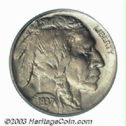 <table><tr><td><TABLE cellSpacing=0 cellPadding=0 width="100%" bgColor=#000000 border=0><TBODY> <TR><TD width="100%"><TABLE cellSpacing=1 cellPadding=3 width="100%" border=0><TBODY><TR><TD width="100%" bgColor=#79735c><FONT face=arial color=#ffffff size=3><B>Description</B> </FONT></TD></TR><TR><TD width="100%" bgColor=#ffffff><FONT face=arial size=2><B>1937-D 5C Three-Legged MS64 PCGS.</B></I> This piece is well struck, but not fully so, with lightly toned surfaces that have a pleasing satiny appearance and evidence of only slight bag marks. An interesting and very well known die variety resulting from overzealous die polishing by a mint employee (Mr. Young), to remove marks from a severely clashed die. The detail of one of the Buffalo's front legs was obscured, hence the tag line, "3-legged." Only one pair of dies was so affected and Mint State examples are quite scarce, although lower circulated coins are always available for a price. The eroded state of the dies has left the coin's surfaces with a highly granular texture. A very nice near-Gem example of this popular variety. </FONT></TD></TR></TBODY></TABLE></TD></TR></TBODY></TABLE><BR><A name=PricesRealized></A><TABLE cellSpacing=0 cellPadding=0 width="100%" bgColor=#000000 border=0><TBODY><TR><TD width="100%"><TABLE cellSpacing=1 cellPadding=3 width="100%" border=0><TBODY><TR><TD width="100%" bgColor=#79735c><A name=PR><FONT face=arial color=#ffffff size=3><B>Previous Prices from Heritage Auctions</B> </FONT></A></TD></TR><TR><TD bgColor=#f6f6ed><TABLE cellSpacing=0 cellPadding=0 width="100%" border=1><TBODY><TR><TD align=middle width="33%"><B>Date</B></TD><TD align=middle width="33%"><B>Service</B></TD><TD align=middle width="33%"><B>Price</B></TD></TR><TR bgColor=whitesmoke><TD width="33%"><B>10/08/2002</B></TD><TD width="33%">NGC</TD><TD width="33%">$5,520.00</TD></TR><TR bgColor=whitesmoke><TD width="33%"><B>09/20/2003</B></TD><TD width="33%">PCGS</TD><TD width="33%">$7,187.50</TD></TR><TR bgColor=whitesmoke><TD width="33%"><B>07/29/2003</B></TD><TD width="33%">NGC</TD><TD width="33%">$5,175.00</TD></TR><TR bgColor=whitesmoke><TD width="33%"><B>07/29/2003</B></TD><TD width="33%">NGC</TD><TD width="33%">$5,175.00</TD></TR><TR bgColor=whitesmoke><TD width="33%"><B>09/28/2002</B></TD><TD width="33%">NGC</TD><TD width="33%">$4,887.50</TD></TR><TR bgColor=whitesmoke><TD width="33%"><B>11/15/2001</B></TD><TD width="33%">NGC</TD><TD width="33%">$3,680.00</TD></TR><TR bgColor=whitesmoke><TD width="33%"><B>02/23/2001</B></TD><TD width="33%">PCGS</TD><TD width="33%">$7,245.00</TD></TR><TR bgColor=whitesmoke><TD width="33%"><B>05/05/2000</B></TD><TD width="33%">PCGS</TD><TD width="33%">$5,405.00</TD></TR><TR bgColor=whitesmoke><TD width="33%"><B>08/07/1998</B></TD><TD width="33%">PCGS</TD><TD width="33%">$4,887.50</TD></TR><TR bgColor=whitesmoke><TD width="33%"><B>07/29/1997</B></TD><TD width="33%">NGC</TD><TD width="33%">$2,420.00</TD></TR><TR bgColor=whitesmoke><TD width="33%"><B>05/02/1997</B></TD><TD width="33%">NGC</TD><TD width="33%">$3,190.00</TD></TR><TR bgColor=whitesmoke><TD width="33%"><B>08/19/1995</B></TD><TD width="33%">NGC</TD><TD width="33%">$2,860.00</TD></TR><TR bgColor=whitesmoke><TD width="33%"><B>02/24/1995</B></TD><TD width="33%">PCGS</TD><TD width="33%">$3,850.00</TD></TR><TR bgColor=whitesmoke><TD width="33%"><B>03/01/2001</B></TD><TD width="33%">PCGS</TD><TD width="33%">$5,060.00</TD></TR><TR bgColor=whitesmoke><TD width="33%"><B>05/01/1999</B></TD><TD width="33%">NGC</TD><TD width="33%">$4,600.00</TD></TR><TR bgColor=whitesmoke><TD width="33%"><B>08/01/1996</B></TD><TD width="33%">NGC</TD><TD width="33%">$2,640.00</TD></TR><TR bgColor=whitesmoke><TD width="33%"><B>03/01/1998</B></TD><TD width="33%">NGC</TD><TD width="33%">$3,080.00</TD></TR><TR bgColor=whitesmoke><TD width="33%"><B>02/01/1997</B></TD><TD width="33%">PCGS</TD><TD width="33%">$4,345.00</TD></TR><TR bgColor=whitesmoke><TD width="33%"><B>08/01/1999</B></TD><TD width="33%">PCGS</TD><TD width="33%">$4,255.00</TD></TR><TR bgColor=whitesmoke><TD width="33%"><B>08/01/1998</B></TD><TD width="33%">PCGS</TD><TD width="33%">$3,680.00</TD></TR></TBODY></TABLE></TD></TR><TR><TD bgColor=#ffffff><FONT face=arial size=1 ?>PLEASE NOTE: All prices realized reflect the final hammer price PLUS the buyer's premium in auctions that charge a buyer's premium. Each item has a notation at the top of the listing indicating whether that lot included a buyer's premium. Example: A item that sells with a final hammer price of $100 and a 20% buyer's premium will display with a price realized of $120. All information listed is intended to be as accurate as possible, but errors are possible. Please use this guide carefully and inform us of any inaccuracies. </FONT></TD></TR></TBODY></TABLE></TD></TR></TBODY></TABLE><BR><TABLE cellSpacing=0 cellPadding=0 width="100%" bgColor=#000000 border=0><TBODY><TR><TD width="100%"><TABLE cellSpacing=1 cellPadding=3 width="100%" border=0><TBODY><TR><TD width="100%" bgColor=#79735c colSpan=6><FONT face=arial color=#ffffff size=3><B>Price Guide*</B> </FONT></TD></TR><TR bgColor=#f6f6ed><TD align=middle><B>Grade</B> </TD><TD align=middle><B>Coin World<BR>(Trends)</B> </TD><TD align=middle><B>Numismedia<BR>Retail</B> </TD><TD align=middle><B>Numismedia<BR>Wholesale</B> </TD><TD align=middle><B>Coin<BR>Universe</B> </TD><TD align=middle><B>Heritage<BR>Value Index</B> </TD></TR><TR bgColor=#ffffff><TD align=middle>63</TD><TD align=right>$5,000.00</TD><TD align=right>---</TD><TD align=right>$3,050.00</TD><TD align=right>$5,000.00</TD><TD align=right>$3,547.25</TD></TR><TR style="FONT-WEIGHT: bold" bgColor=#cccfdd><TD align=middle>64</TD><TD align=right>$10,000.00</TD><TD align=right>---</TD><TD align=right>$6,450.00</TD><TD align=right>$7,750.00</TD><TD align=right>$5,583.50</TD></TR><TR bgColor=#ffffff><TD align=middle>65</TD><TD align=right>$25,000.00</TD><TD align=right>---</TD><TD align=right>$16,500.00</TD><TD align=right>$34,000.00</TD><TD align