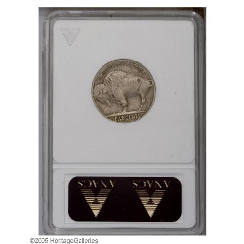 <B>1937-D<5C> Three-Legged VF20 ANACS.</B></I> An evenly worn, light-gray representative of this highly popular "mint error", produced by excess die polishing. Smooth on the obverse, with a few minor abrasions on the reverse. A worthwhile example, for the assigned grade level.<BR><I>From The Lexington Collection.</B></I>