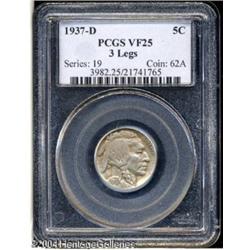 1937-D 5C Three-Legged VF25 PCGS. This popular var 1937-D 5C Three-Legged VF25 PCGS.