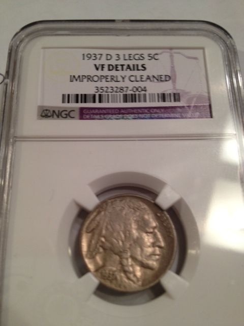 1937-D BUFFALO NICKEL RARE 3 LEGS, NGC VF DETAILS