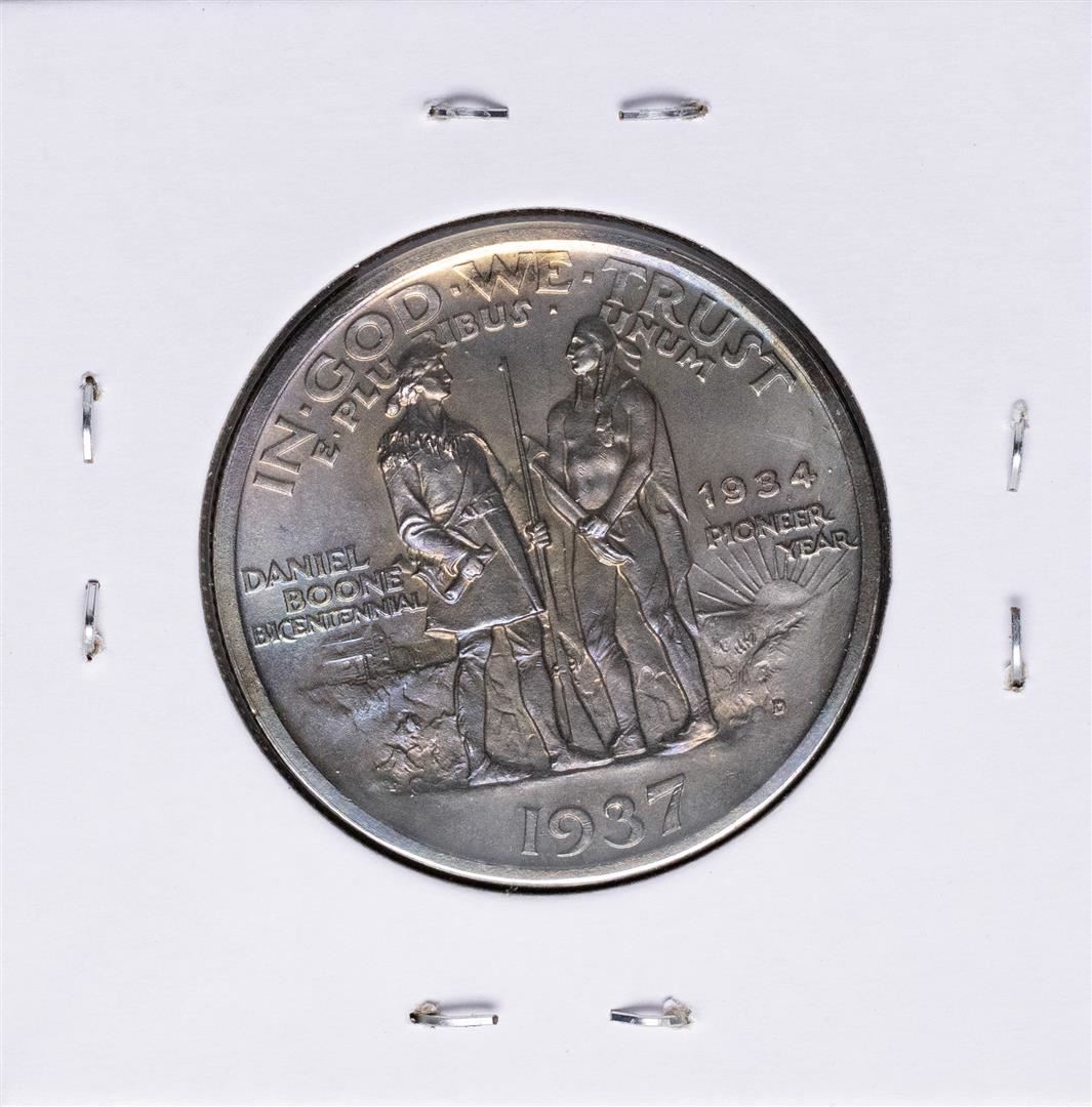 One 1937-D Boone Bicentennial Commemorative Half Dollar Coin.