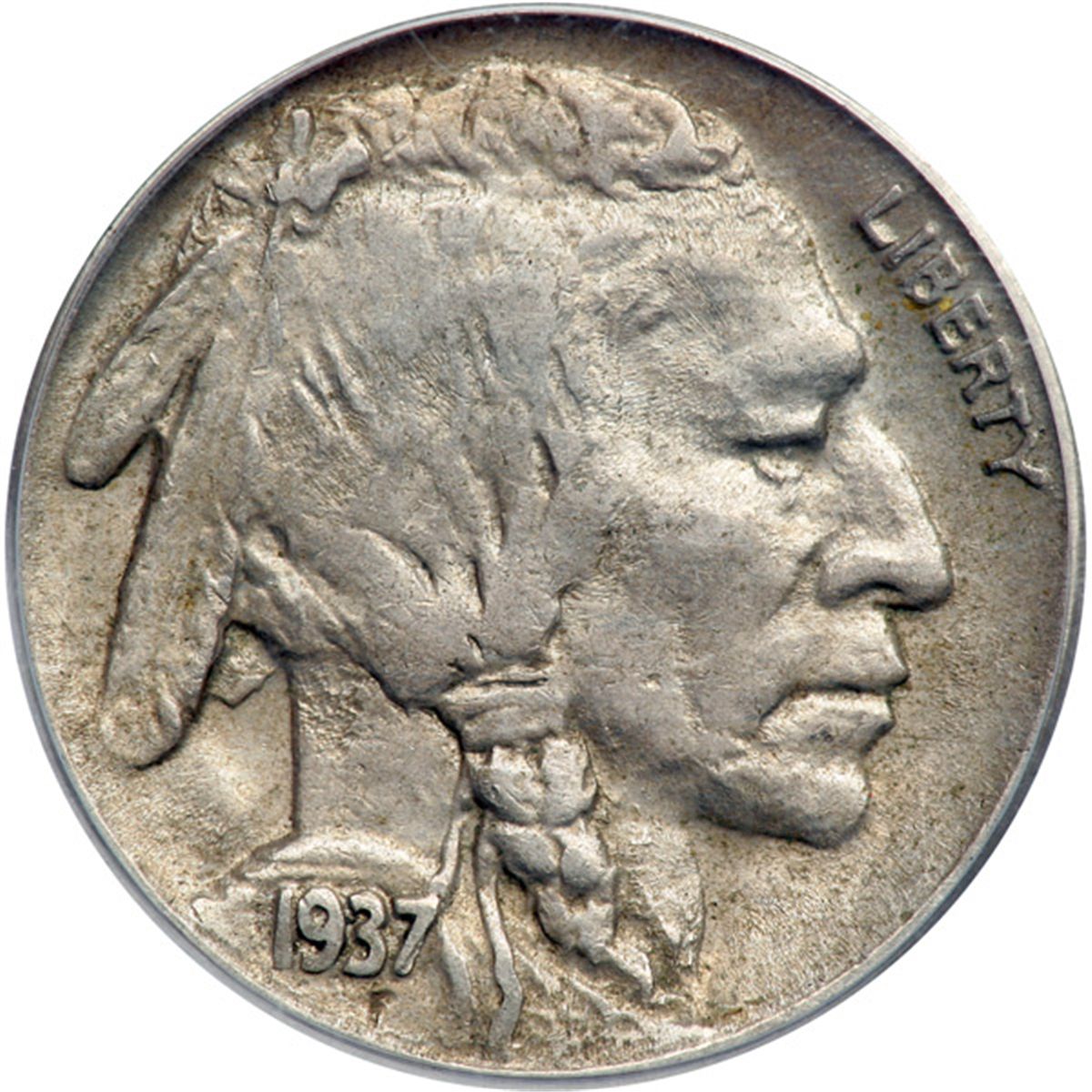 1937-D Buffalo Nickel. 3 legs. PCGS graded AU-55. Well struck with uniform light toning (PCGS # 3982) .