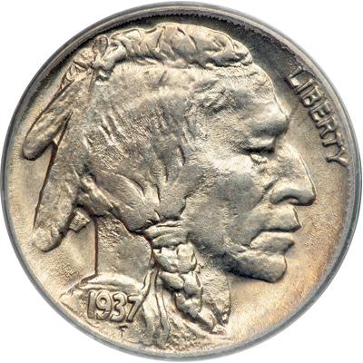 1937-D Buffalo Nickel. 3 legs. PCGS graded MS-63. Fully lustrous with a hint of light toning. A satin-fresh beauty with somewhat granular luster giving evidence of a set of dies that were late in their shelf-life. Level, rolling luster covers both sides with splashes of rich nickel brilliance giving surfaces a splendid appearance. Spot-free. Scarce. Prized in Mint condition. Pop 253 (PCGS # 3982) .