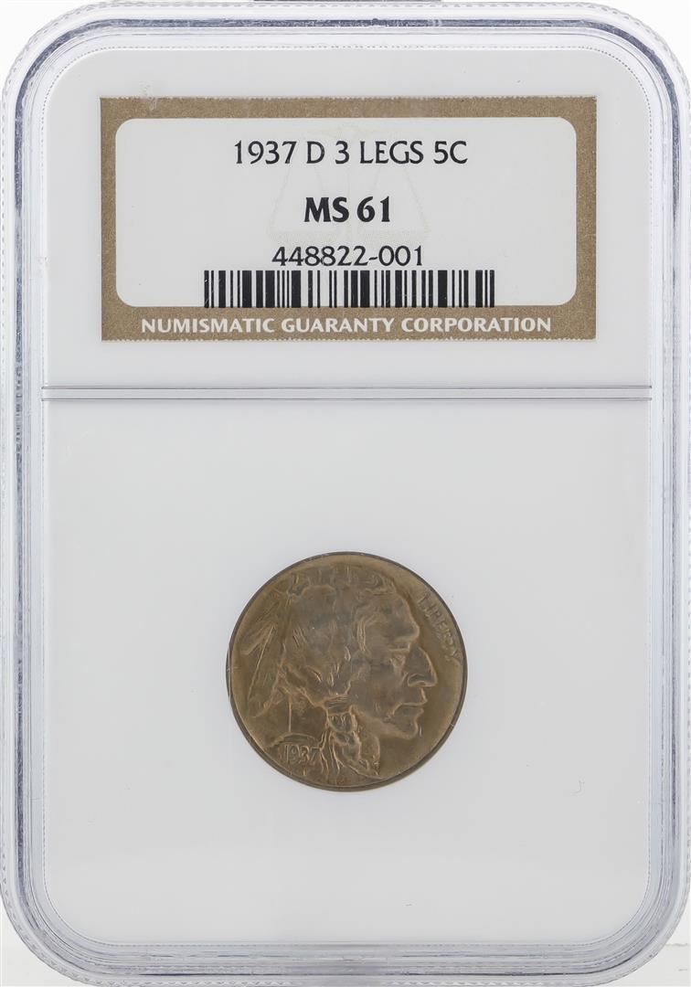 One 1937 D Buffalo Nickel 3 legs NGC MS61. NGC Certified.