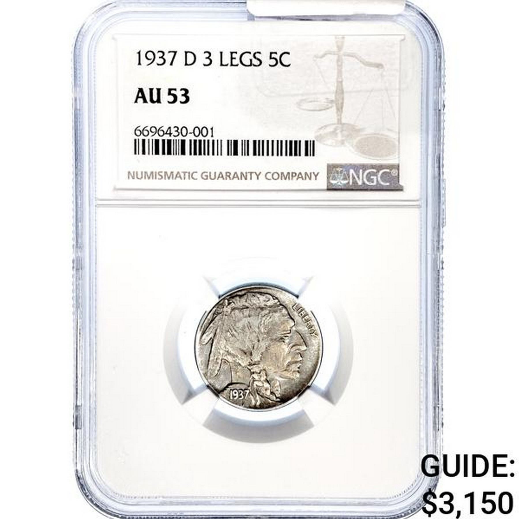 1937-D Buffalo Nickel NGC AU53 3 Legs