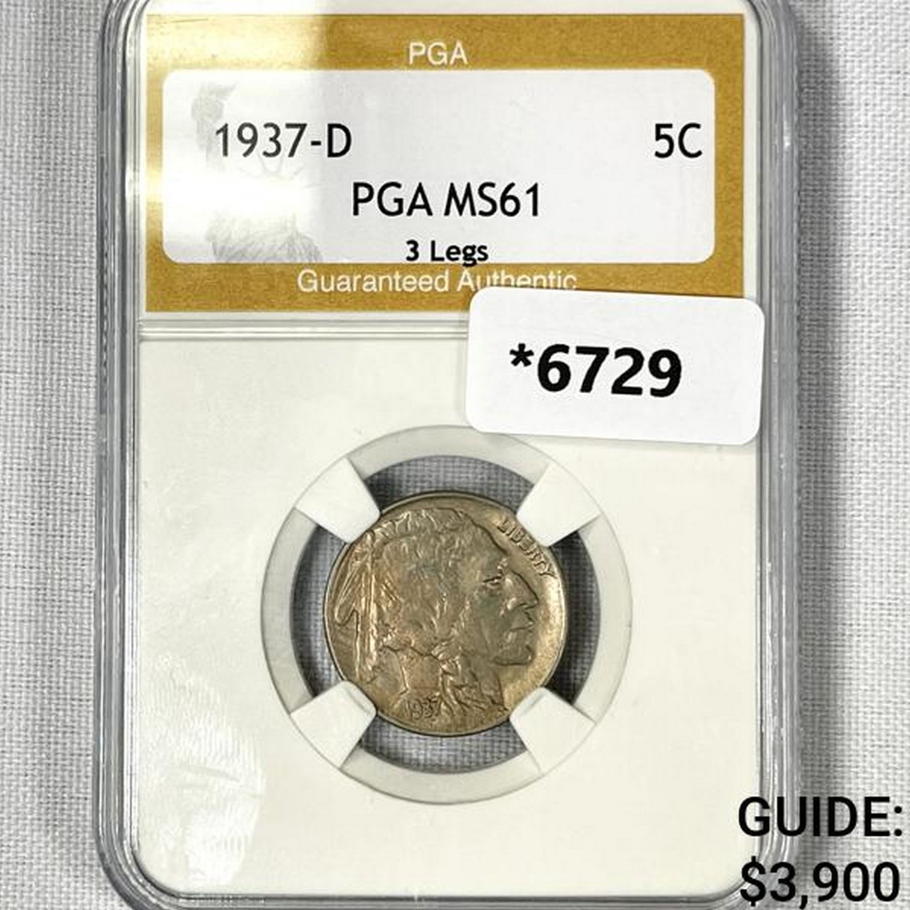 1937-D Buffalo Nickel PGA-MS61 3 Legs