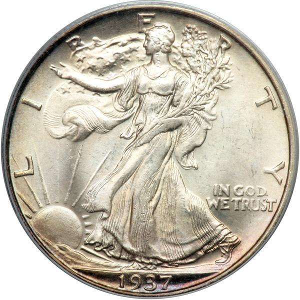 1937-D Liberty Walking Half Dollar. PCGS graded MS-64+ PQ. CAC Approved. Well struck with a hint of light tone; quite close to full gem class (PCGS # 6602) .