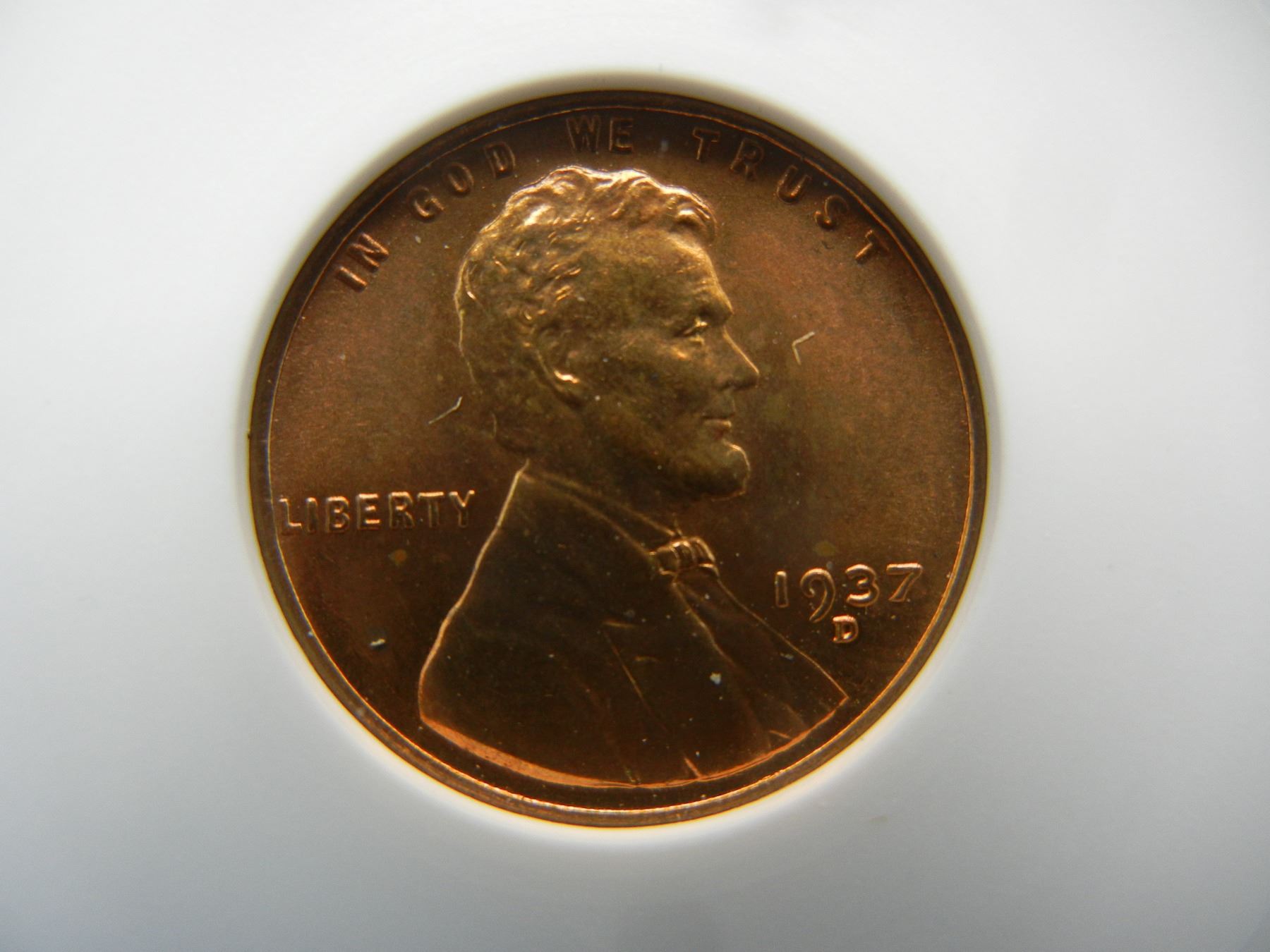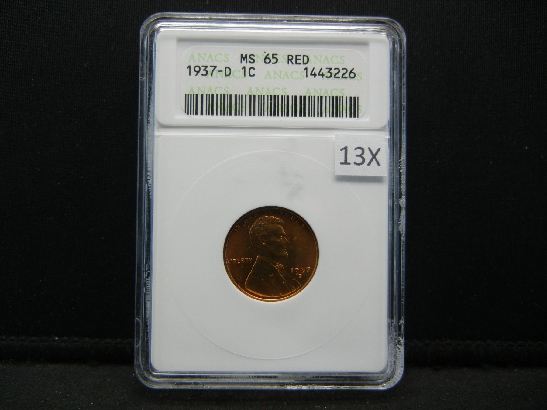 1937-D Lincoln 1c. ANACS MS 65 RED.