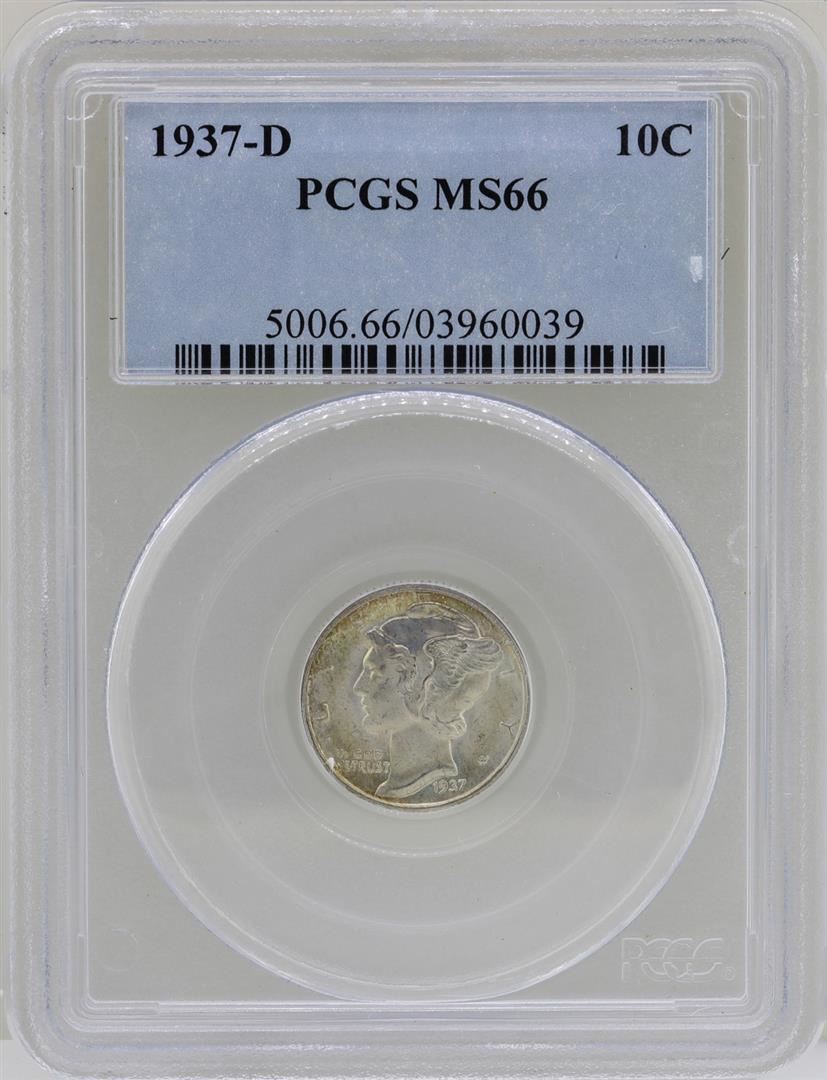 One 1937-D Mercury Dime Coin PCGS MS66. PCGS Graded.