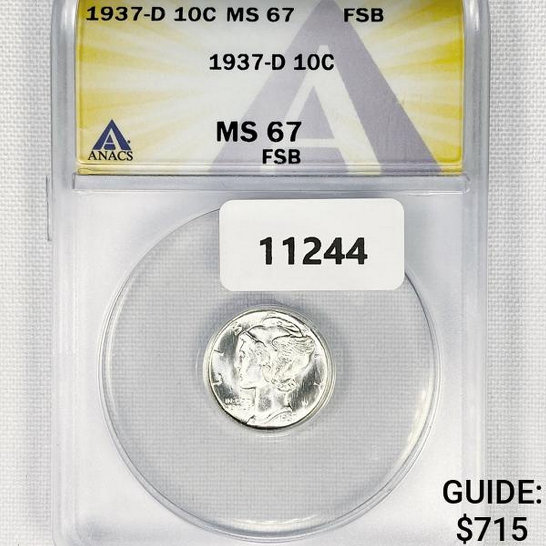1937-D Mercury Silver Dime ANACS-MS67 FSB