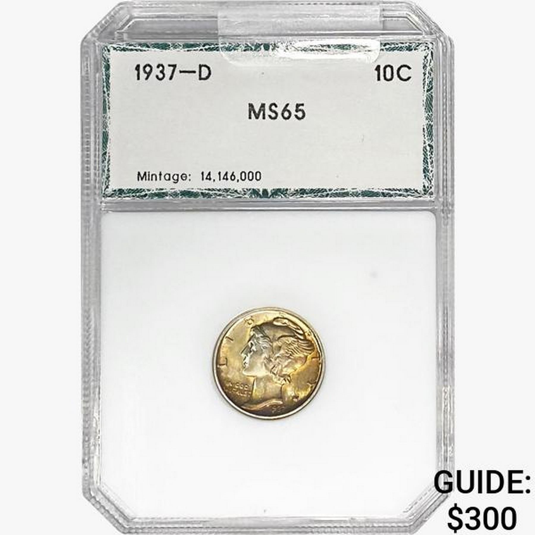 1937-D Mercury Silver Dime PCI MS65