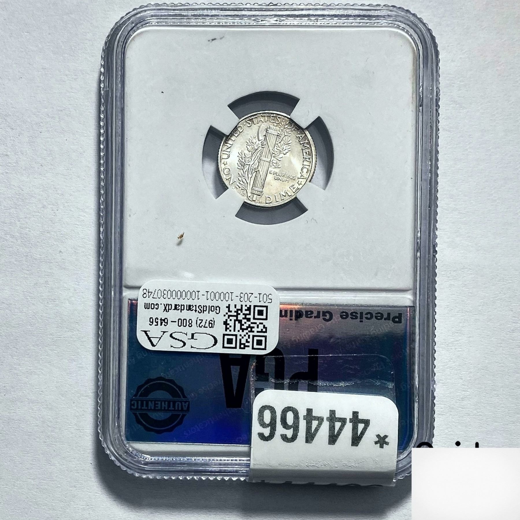 COINS AND CURRENCY LISTED IN GSA’S CATALOG AS GRADED AND ENCAPSULATED BY PCGS, NGC, ANACS, ICG, PCGS CURRENCY, PMG, PCGS BANKNOTE GRADING, CMC OR ANY OTHER THIRD-PARTY GRADING SERVICE ARE LIKEWISE SOLD “AS-IS” EXCEPT AS EXPRESSLY SET FORTH HEREIN. ALL THIRD-PARTY GRADING SERVICE GUARANTEES, INCLUDING AUTHENTICITY, ARE THE SOLE RESPONSIBILITY OF THE THIRD-PARTY GRADING SERVICE AND NOT WARRANTIES OR GUARANTEES OF GSA. BIDDERS SHOULD CONTACT THESE THIRD-PARTY GRADING SERVICES DIRECTLY WITH RESPECT TO ANY CLAIMS OR QUESTIONS THEY MAY HAVE CONCERNING THEIR GUARANTEES AND WARRANTIES. BIDDERS ACKNOWLEDGE AND AGREE THAT AUCTIONEER IS NOT BOUND BY OR LIABLE FOR ANY OPINION OR CERTIFICATION BY ANY THIRD-PARTY GRADING SERVICE. REMOVAL OF A PRODUCT FROM ITS PROTECTIVE CASING OR HOLDER OR ALTERATION OF ANY COIN HOLDER WAIVES ALL RIGHTS CONCERNING THE PRODUCT CONTAINED THEREIN.