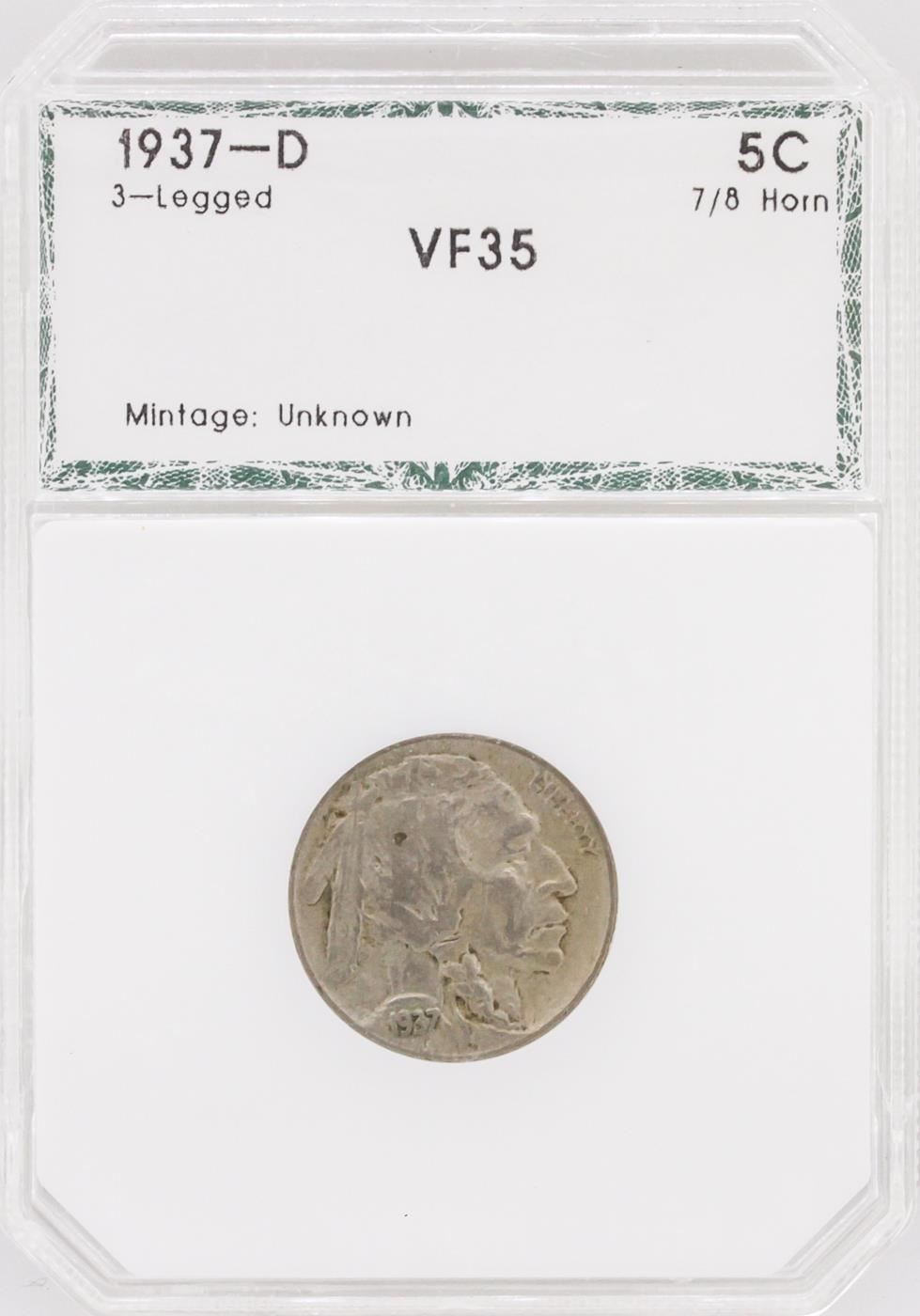 One 1937-D Nickel VF35 3-Legged Buffalo Coin.