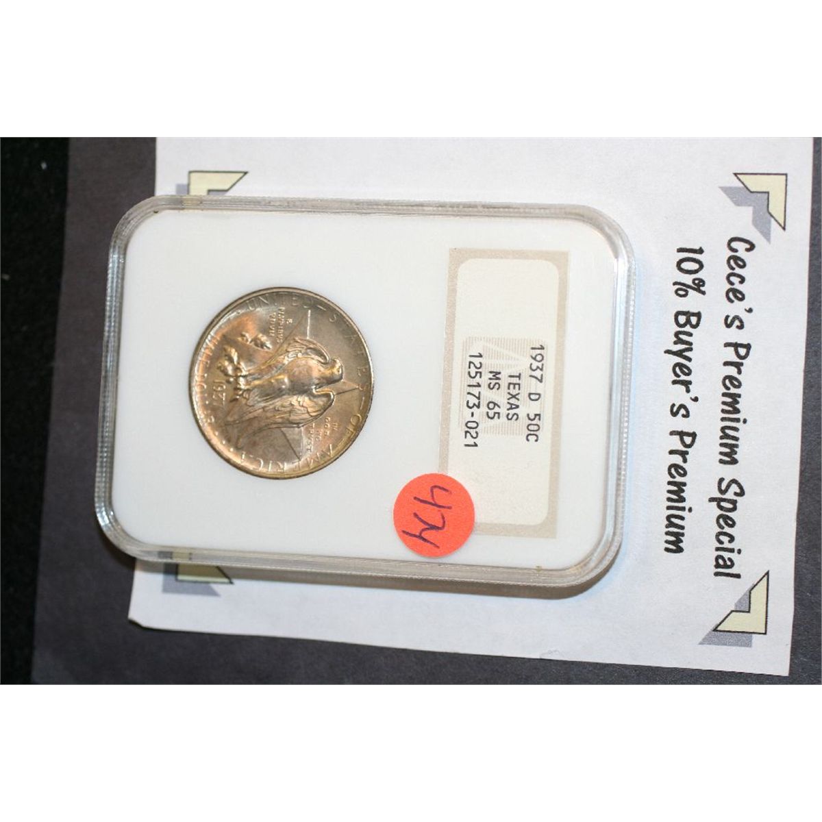 1937-D Texas Commerative Half Dollar, NGC Graded MS65 **CeCe's Premium Special 10% Buyer's Premium-This Lot Only!**