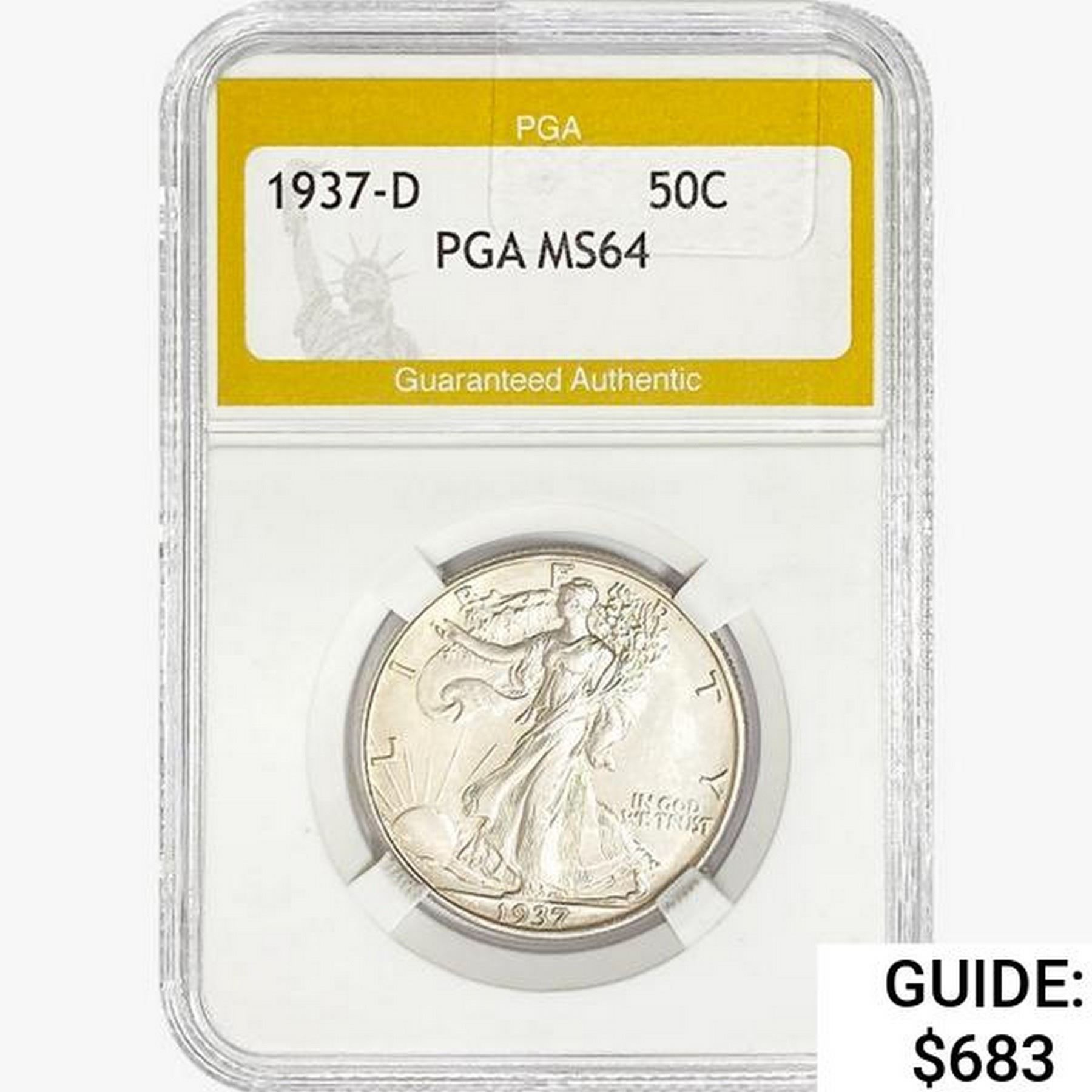1937-D Walking Liberty Half Dollar PGA MS64
