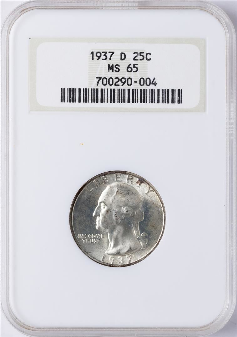 One 1937-D Washington Quarter Coin NGC MS65 Old Holder. NGC Certified.