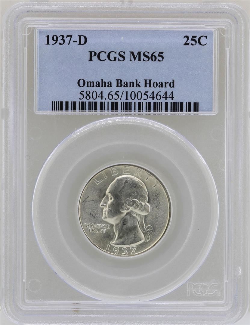 One 1937-D Washington Quarter Coin PCGS MS65. PCGS Graded.