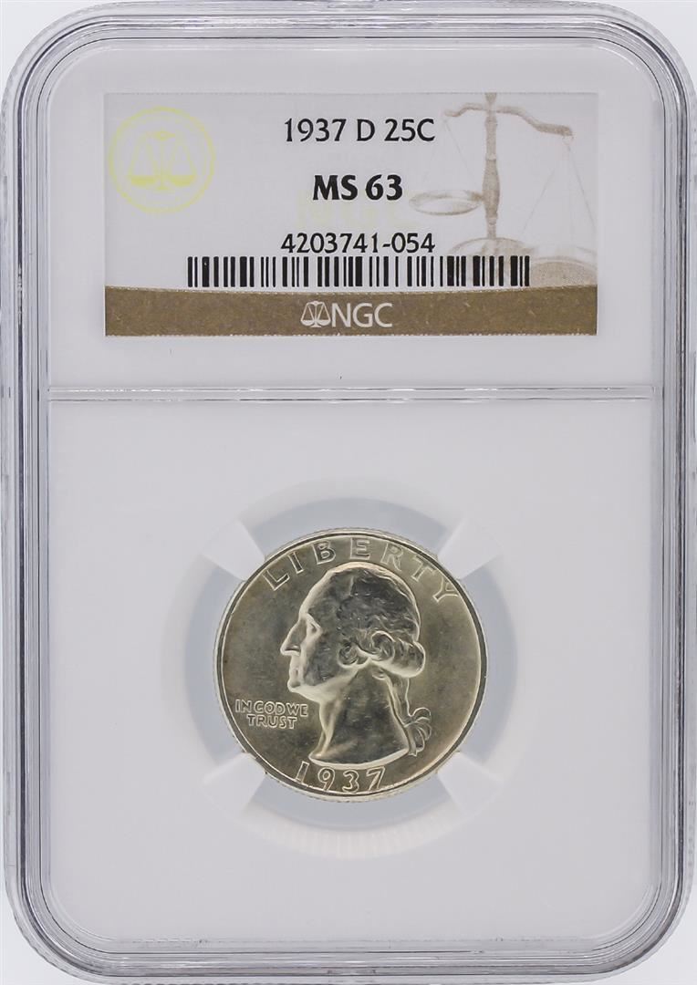 One 1937-D Washington Quarter NGC Graded MS63. NGC Certified.