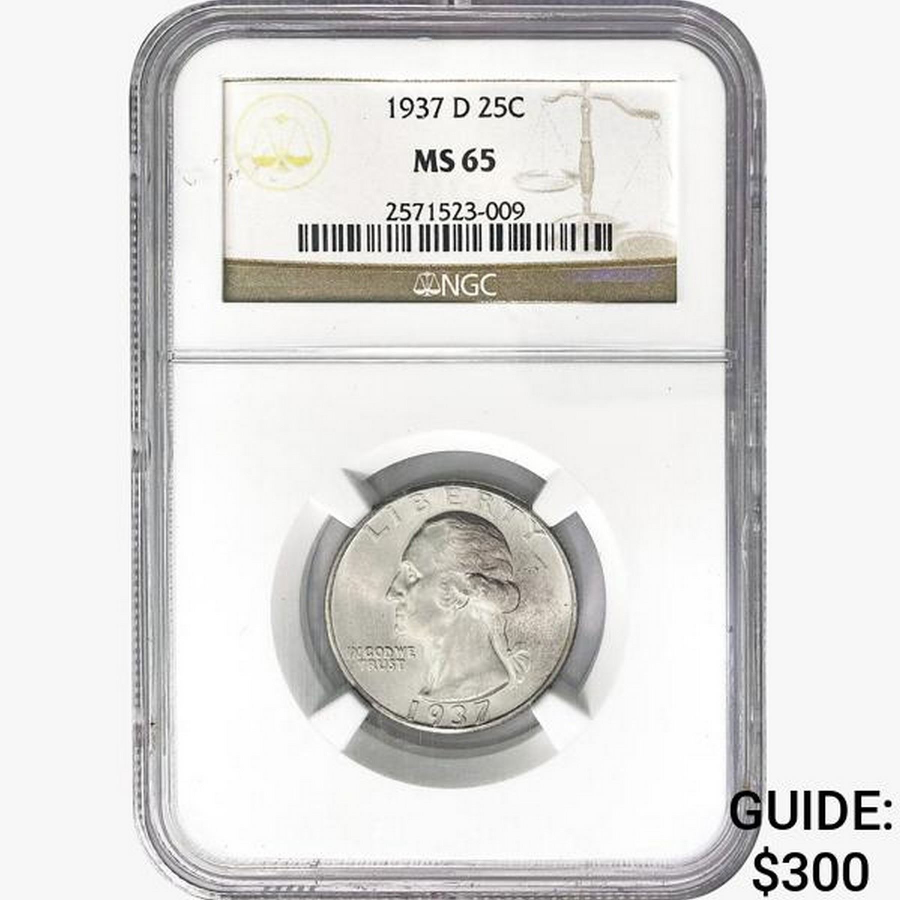 1937-D Washington Silver Quarter NGC MS65