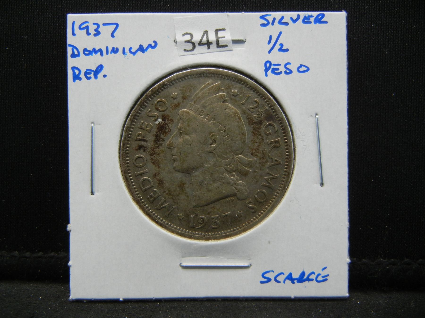 1937 Dominican Republic Silver 1/2 Peso. Scarce.