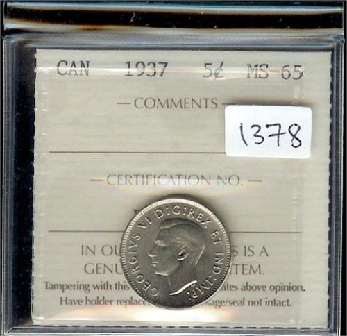 1937 "Dot" ICCS MS65, A very nice and example. Should sell over estimate.