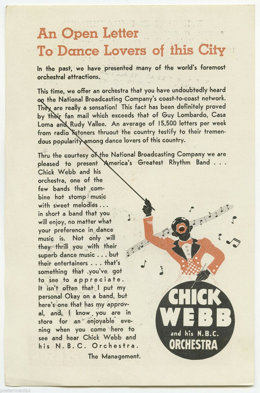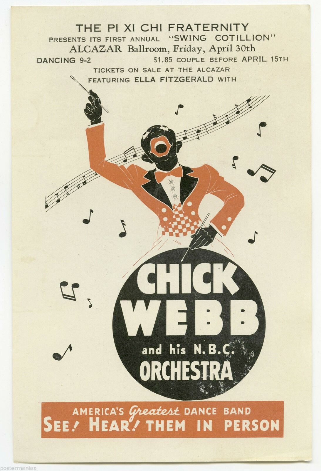 1937 ELLA FITZGERALD / CHICK WEBB Concert Handbill