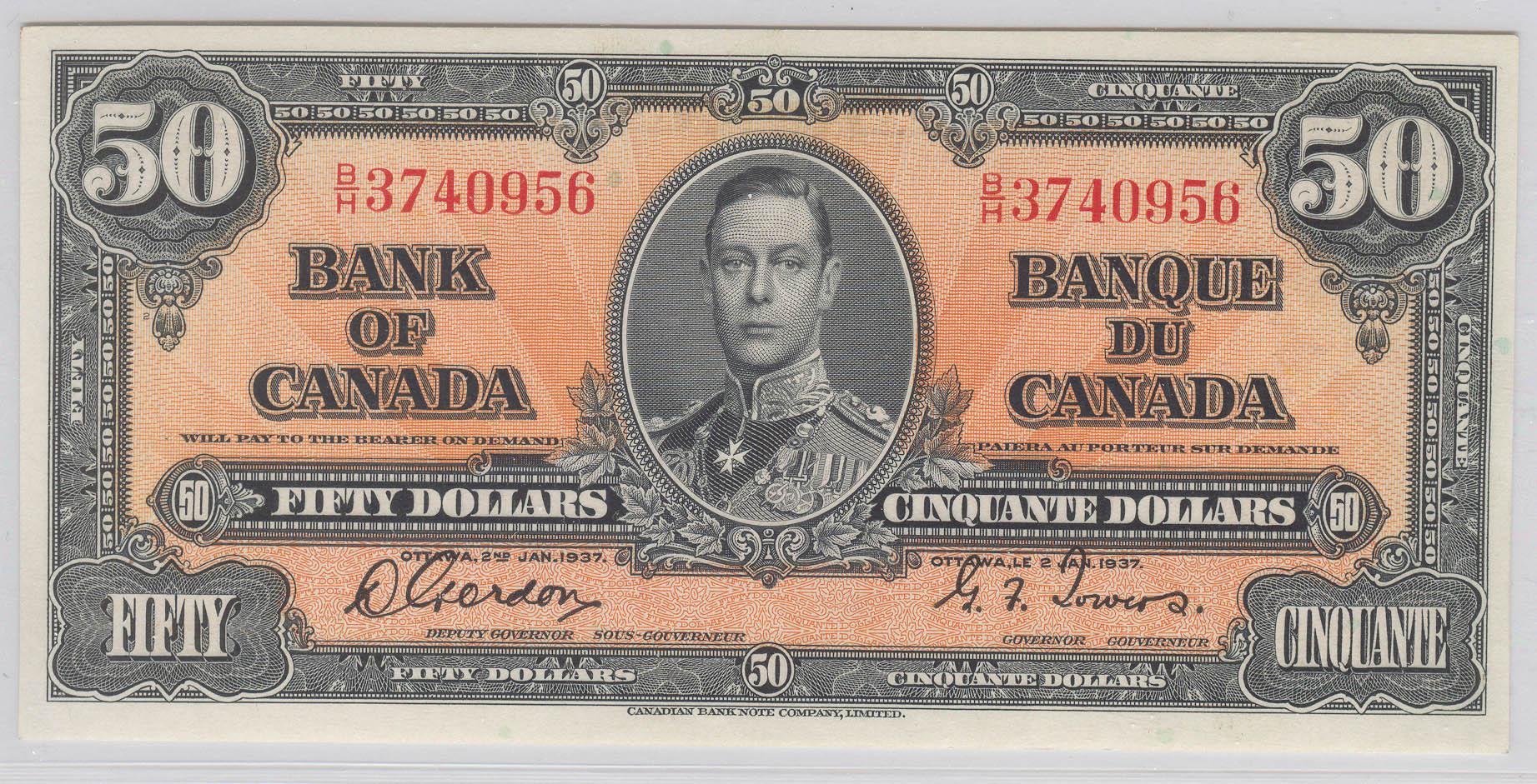 1937 Fifty Dollars, BC-26b, BCS UNC-62, Gordon Towers, serial B/H3740956.