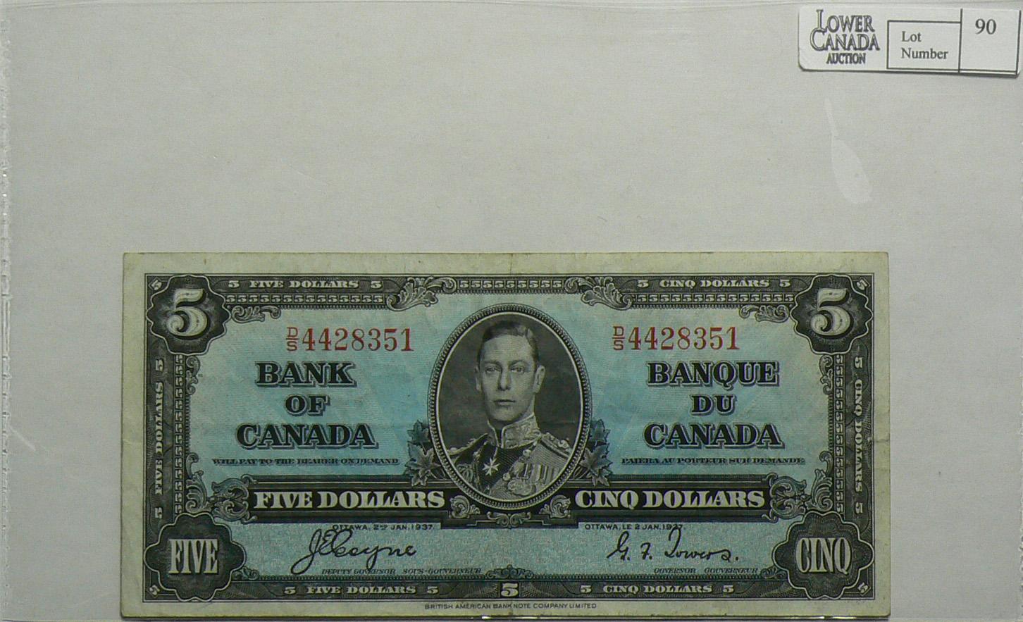 1937, Five Dollars, BC23c, EF Coyne Towers, serial D/S4428351
