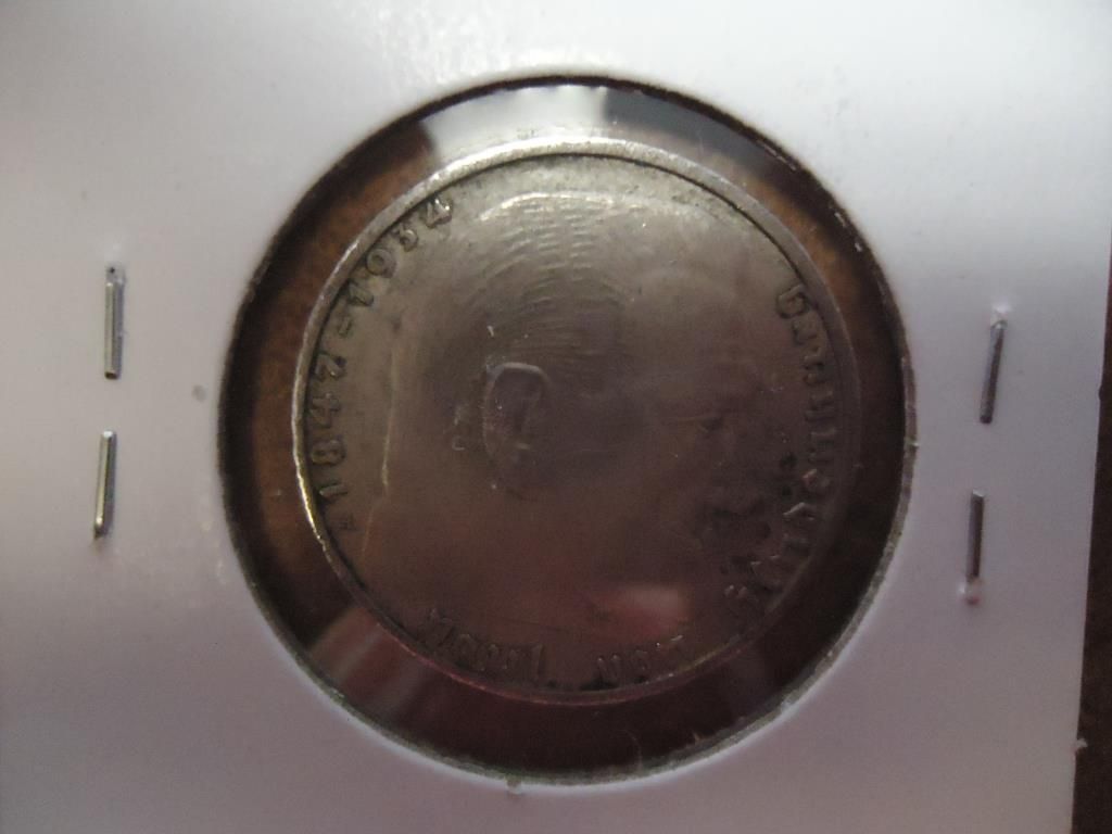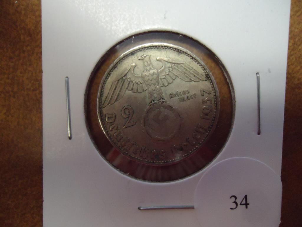 1937 GERMAN SILVER 2 MARKS WITH SWASTIKA