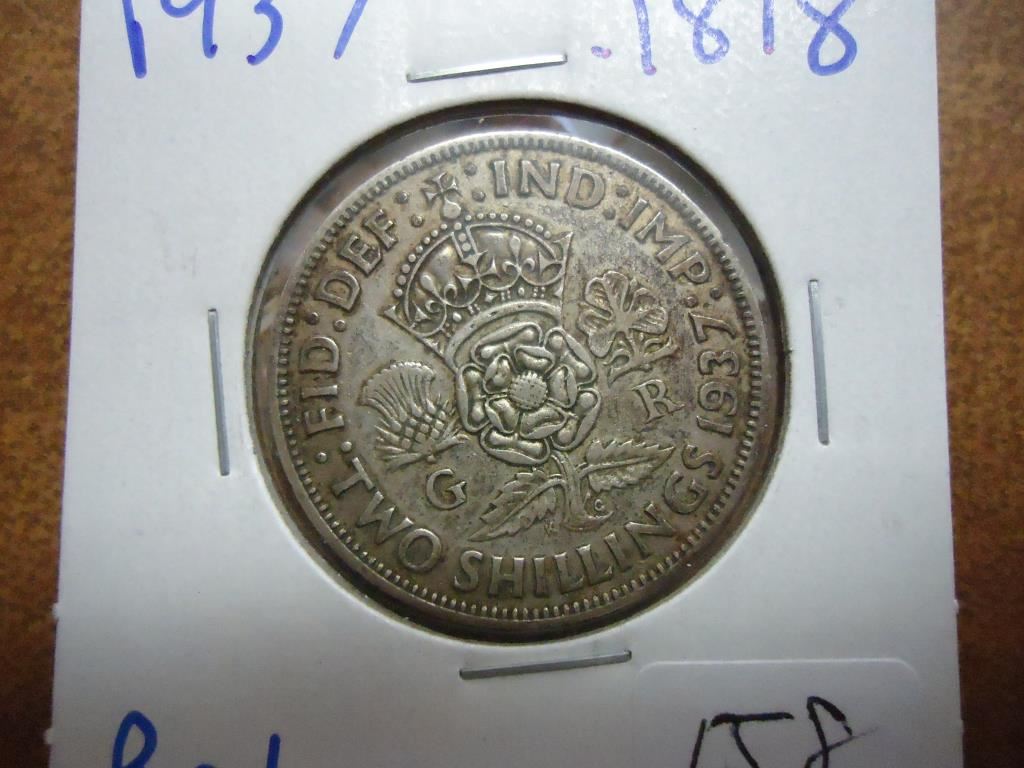 1937 GREAT BRITAIN SILVER 2 SHILLINGS .1818 OZ.ASW