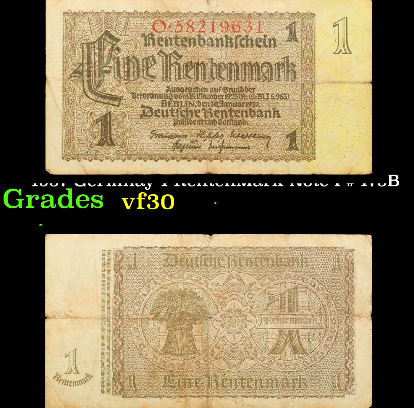 1937 Germnay 1 RentenMark Note P# 173B Grades vf++.