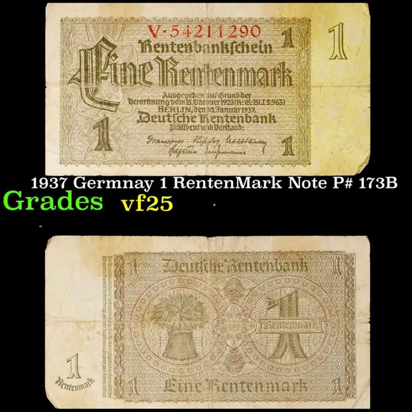 1937 Germnay 1 RentenMark Note P# 173B Grades vf+.