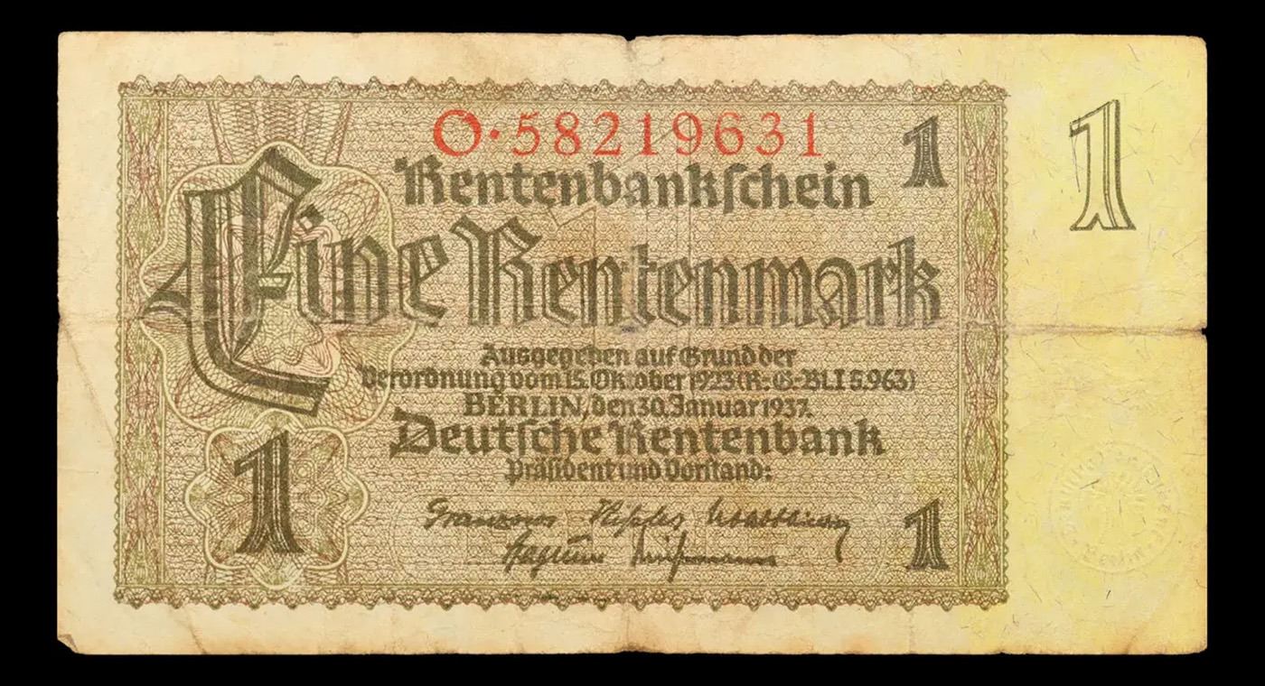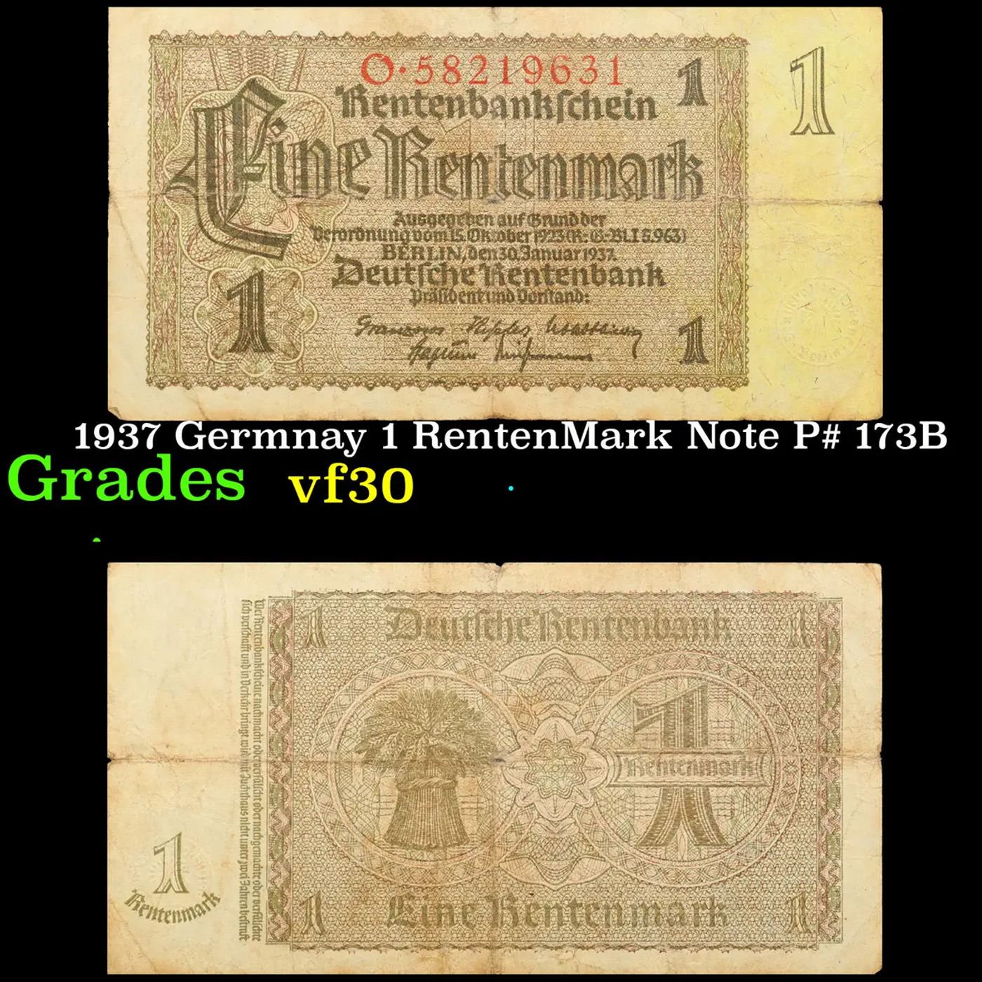 1937 Germnay 1 RentenMark Note P# 173B Grades vf++.