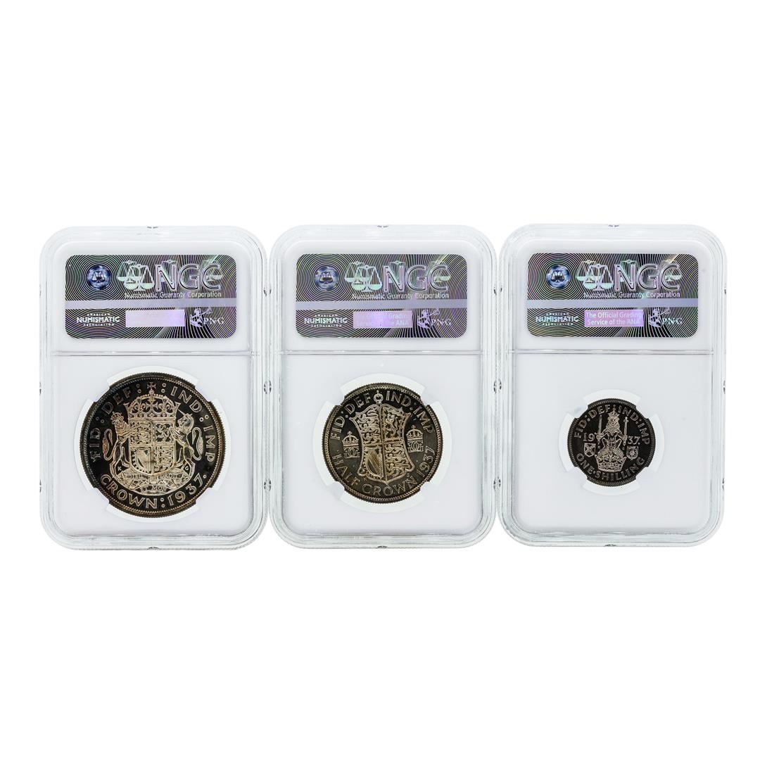 One 1937 Great Britain (3) Coin Proof Set NGC PF64/PF65/PF66. NGC Certified.