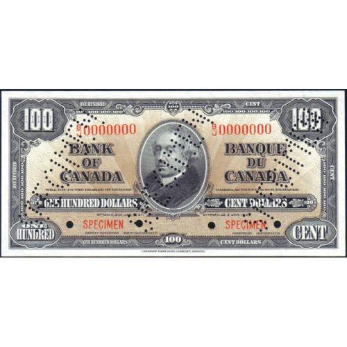 1937 One Hundred Dollars Specimen, BC-27S, Serial Number B/J0000000, PMG Choice Uncirculated-64. A perfectly centered note with a remnant of a mounting? on the back top right corner