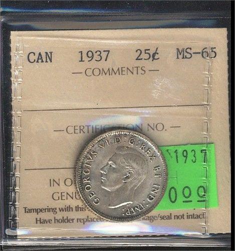 1937 ICCS MS65 Light tone over full lustre, mostly brilliant.