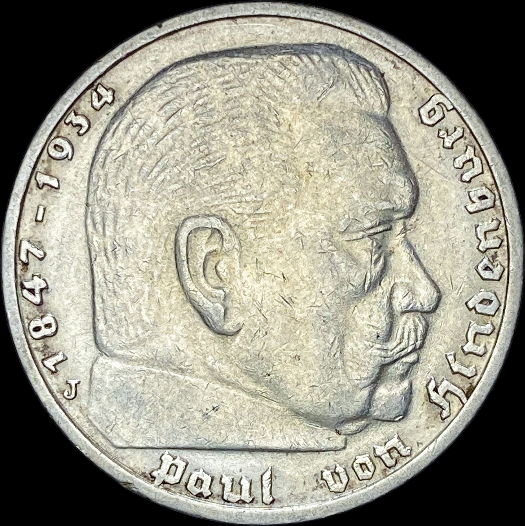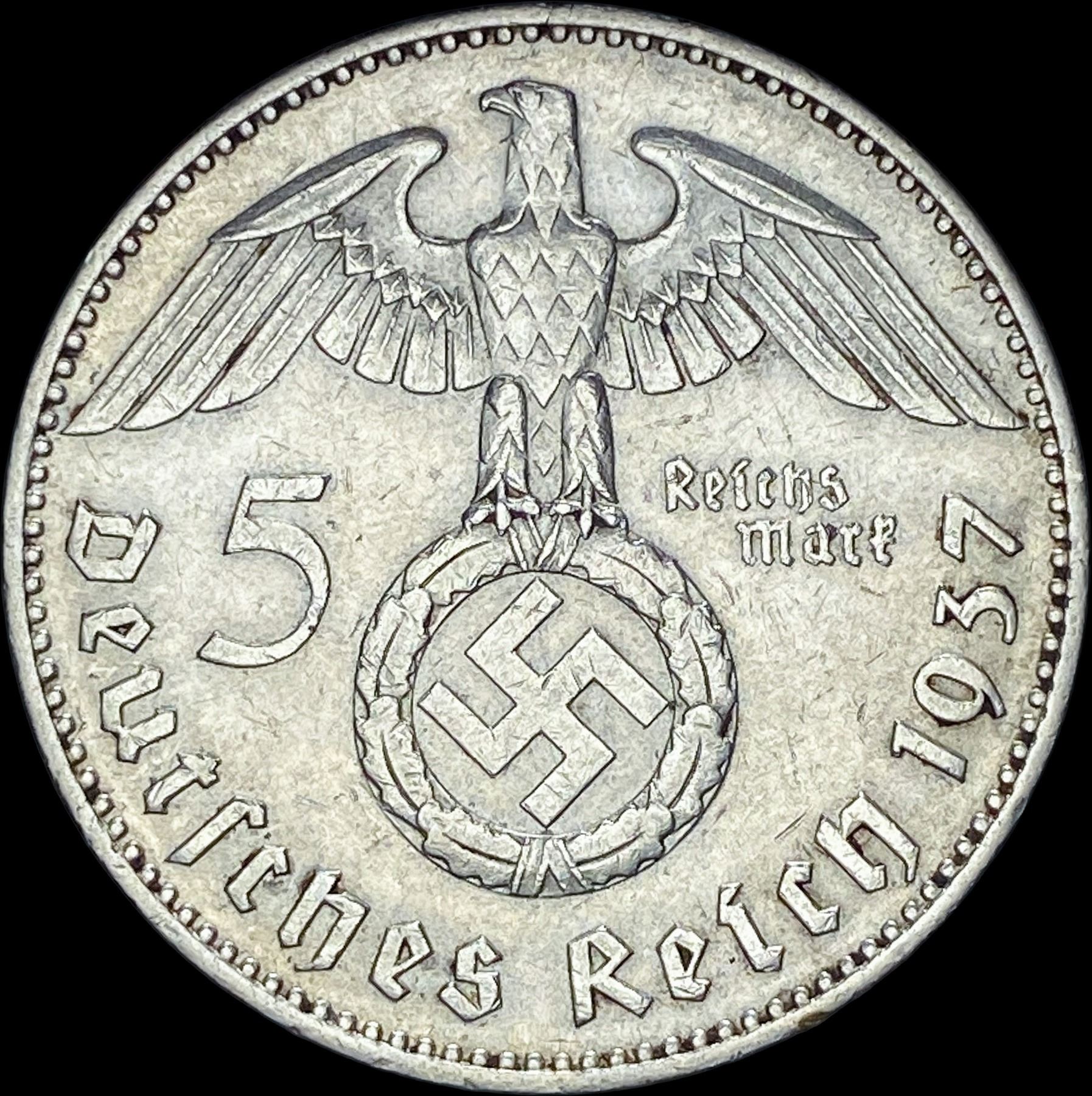 1937-J Germany Silver 5 Reichsmark CLOSELY UNCIRCULATED