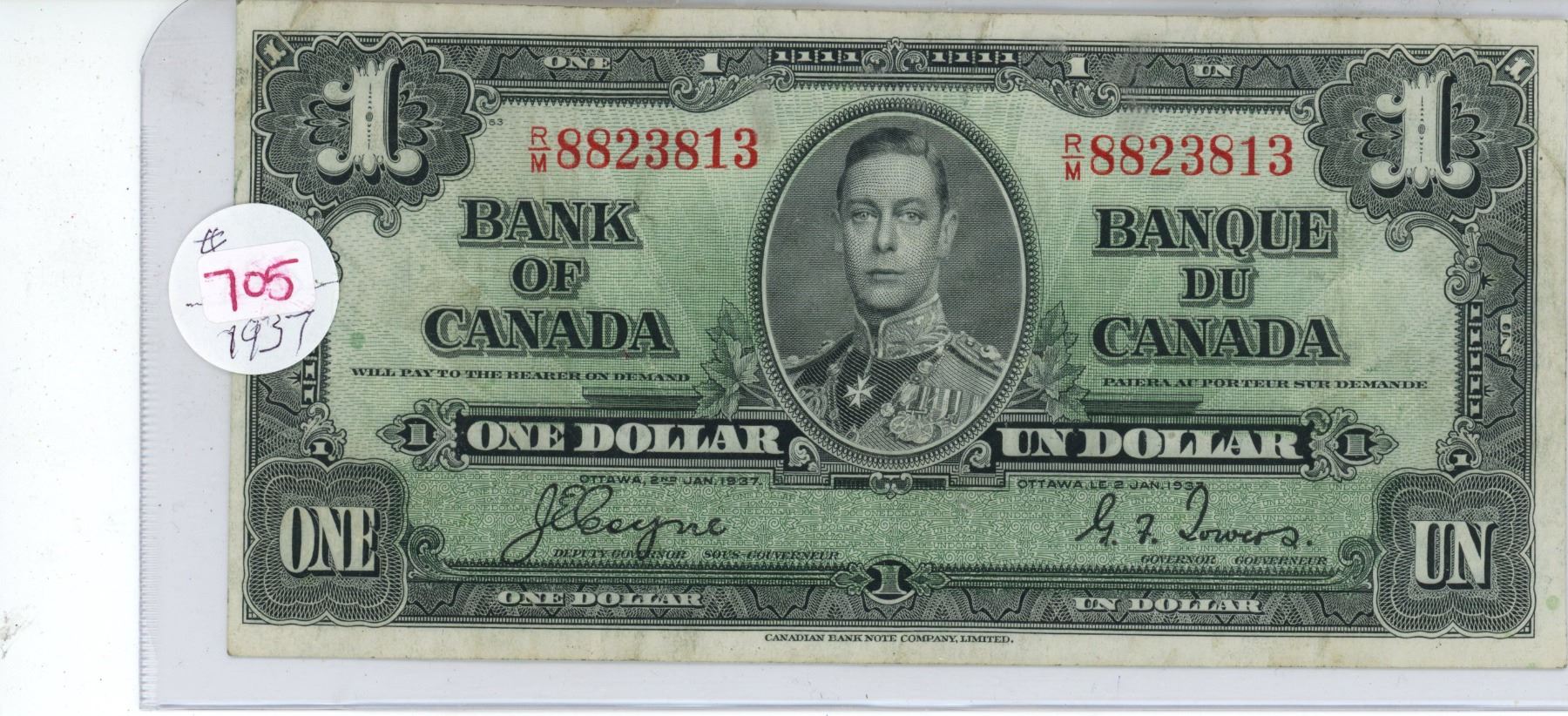 1937 KG $1- bill of Canada