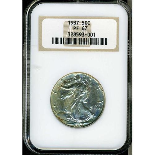 From a proof mintage of 5728 coins. A flawless gem example with original toning. Only twenty-five examples certified finer by either grading service. Bids $2400.