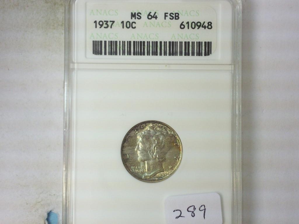 1937 MERCURY DIME ANACS MS64 FSB