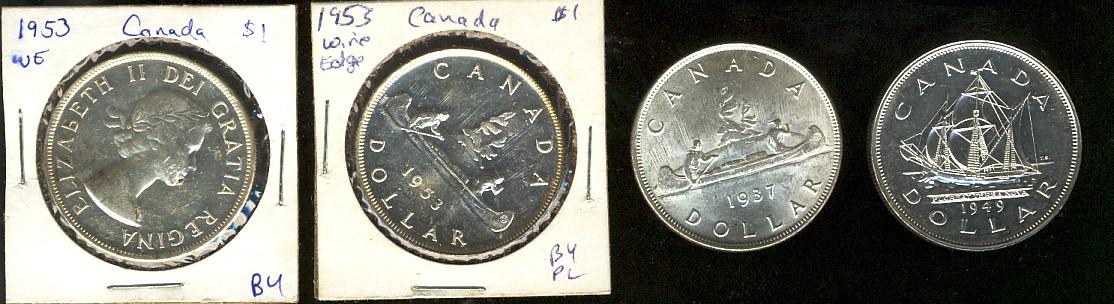 1937 MS62, 1949 MS60, 1953 SF, 1953 NSF $1. Lot of 4 dollars MS60 or better