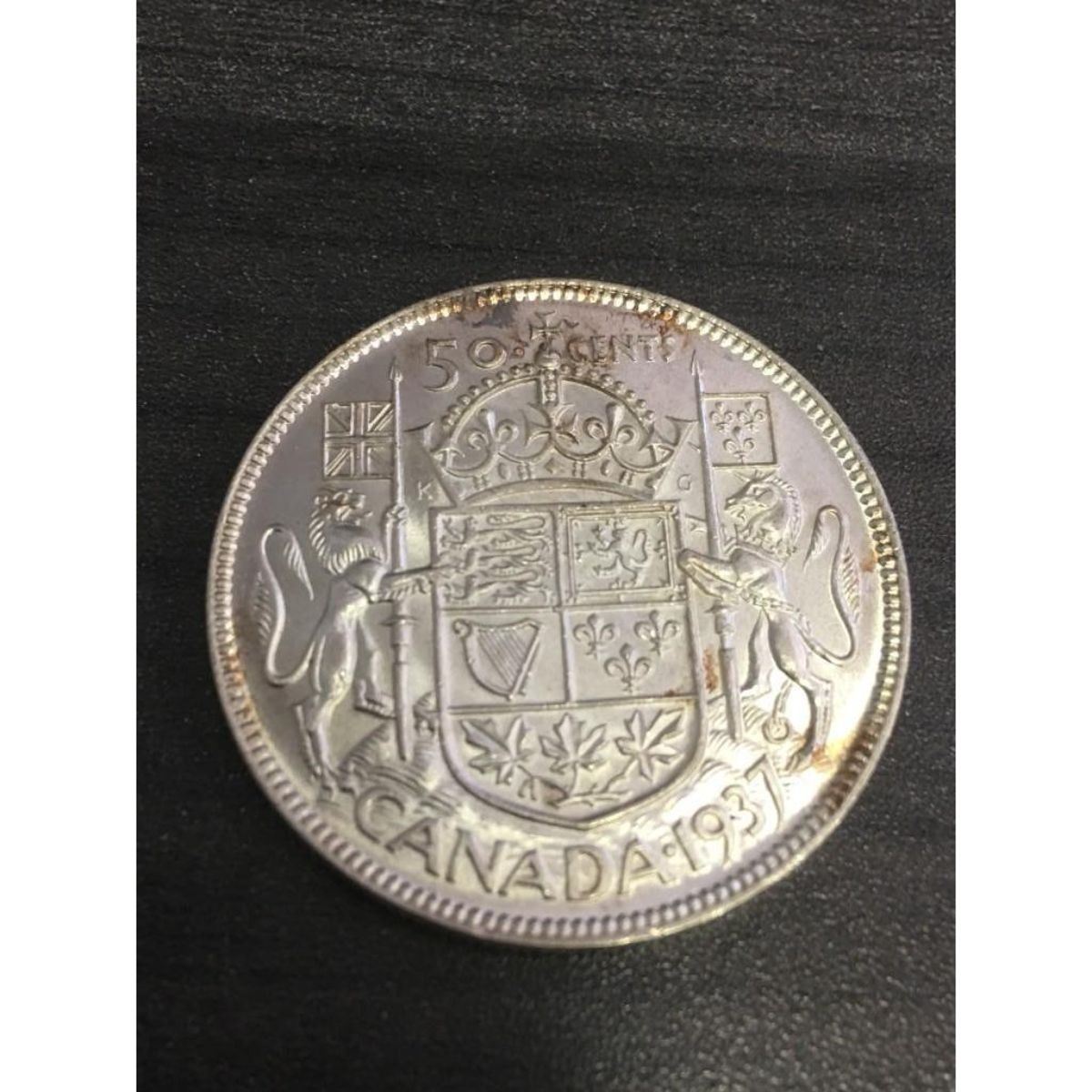 A 1937 MS63+ Silver 50 Cent Canadian Coin. Excellent Looking Coin From The 1930's. Please View Photos For Further Details.