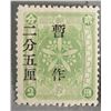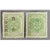 Two (2) 1937 Manchukuo (Empire of Manchuria) 2.5 cents stamp, overprints and surcharged, 18.5 x 22 mm, Provenance: private Canadian collector